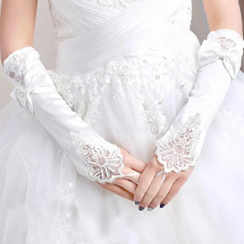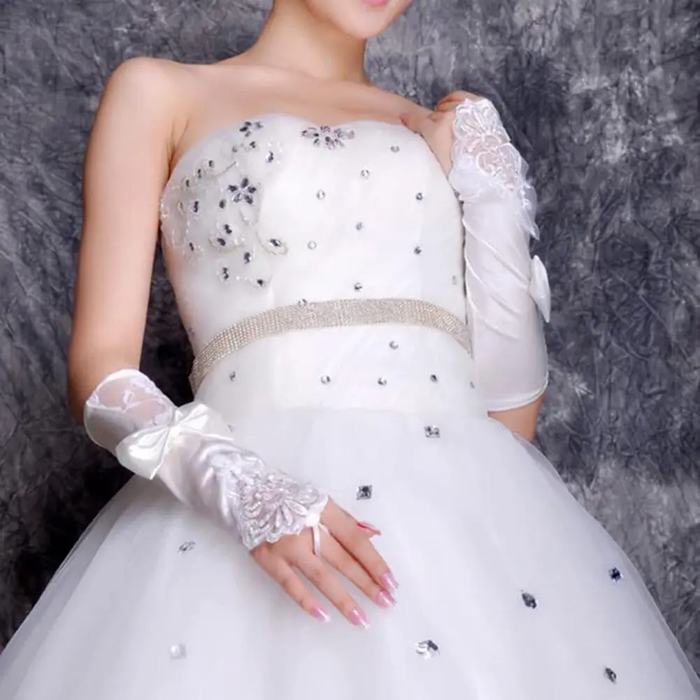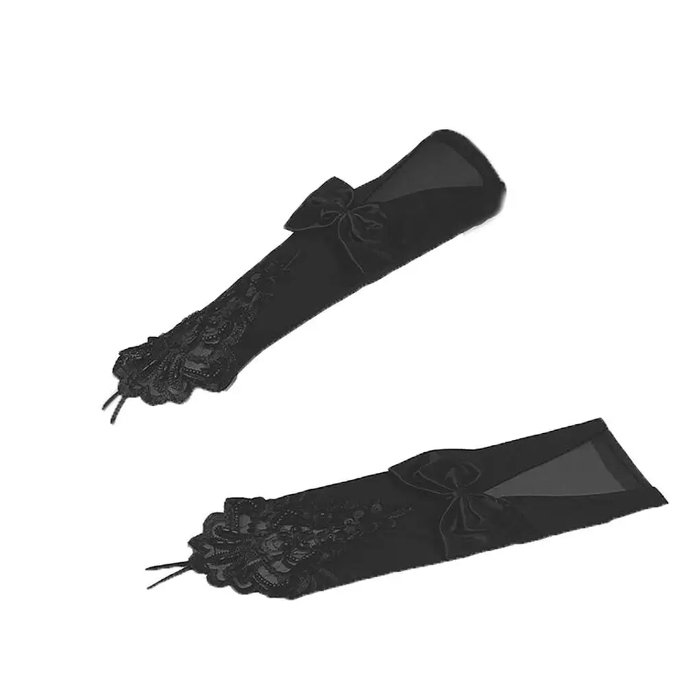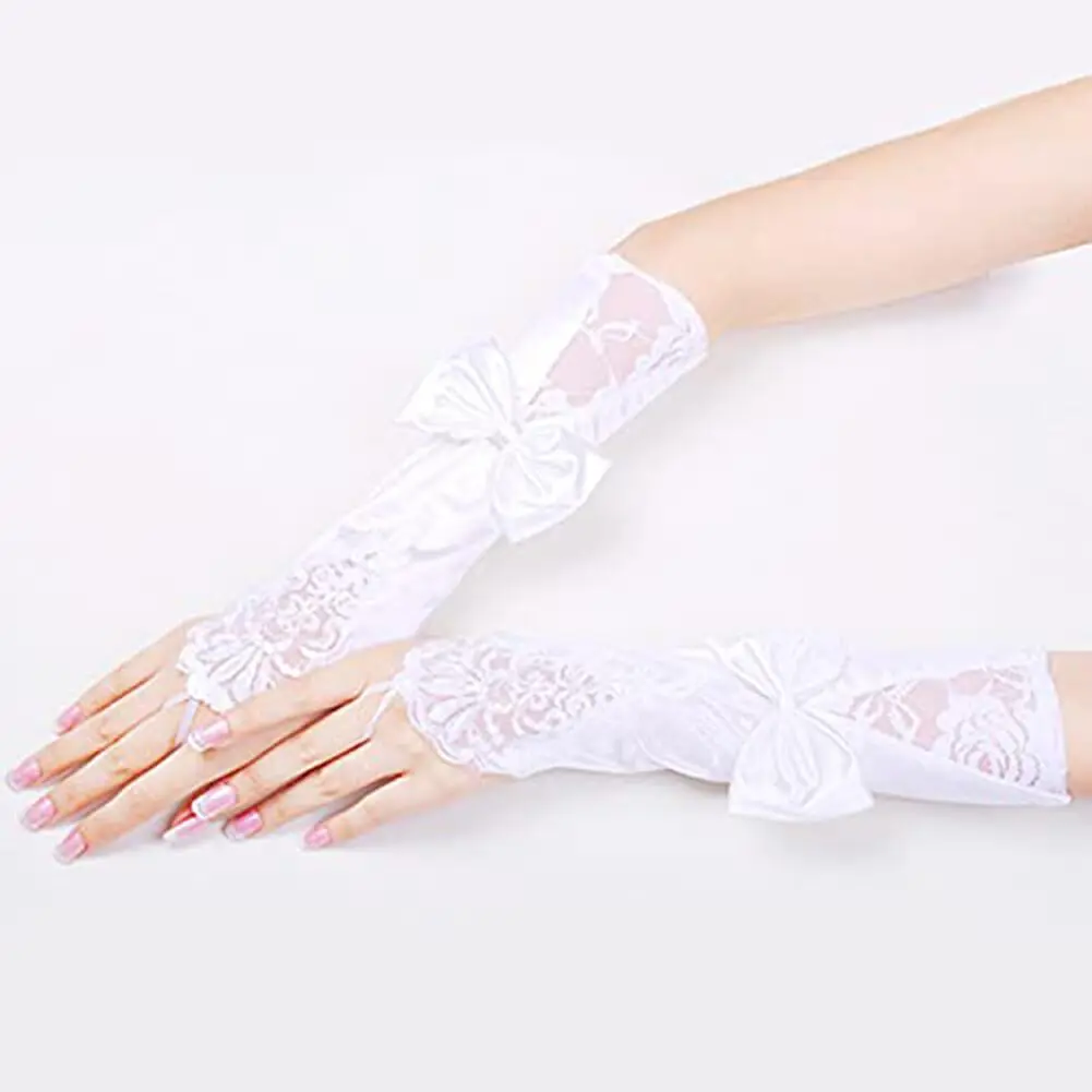 Lace Gloves Bow Mesh Sheer Fingerless Gloves Women Girl Elegant Bridal Bridesmaids Halloween Wedding Party Prom Cosplay Gloves