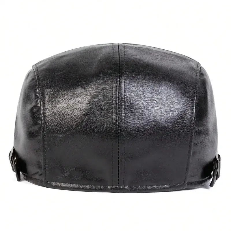 Men Solid Color Pu Leather Newsboy Caps British Painters Hats Spring Autumn Side Adjustable Flat Cap Hip Hop Berets