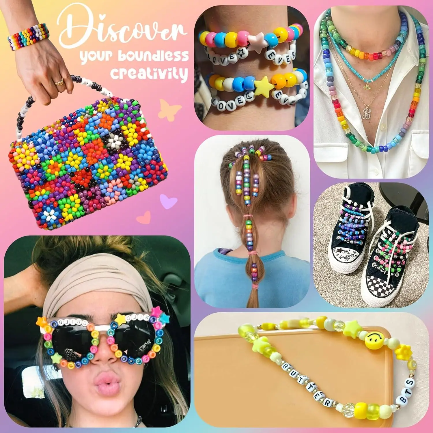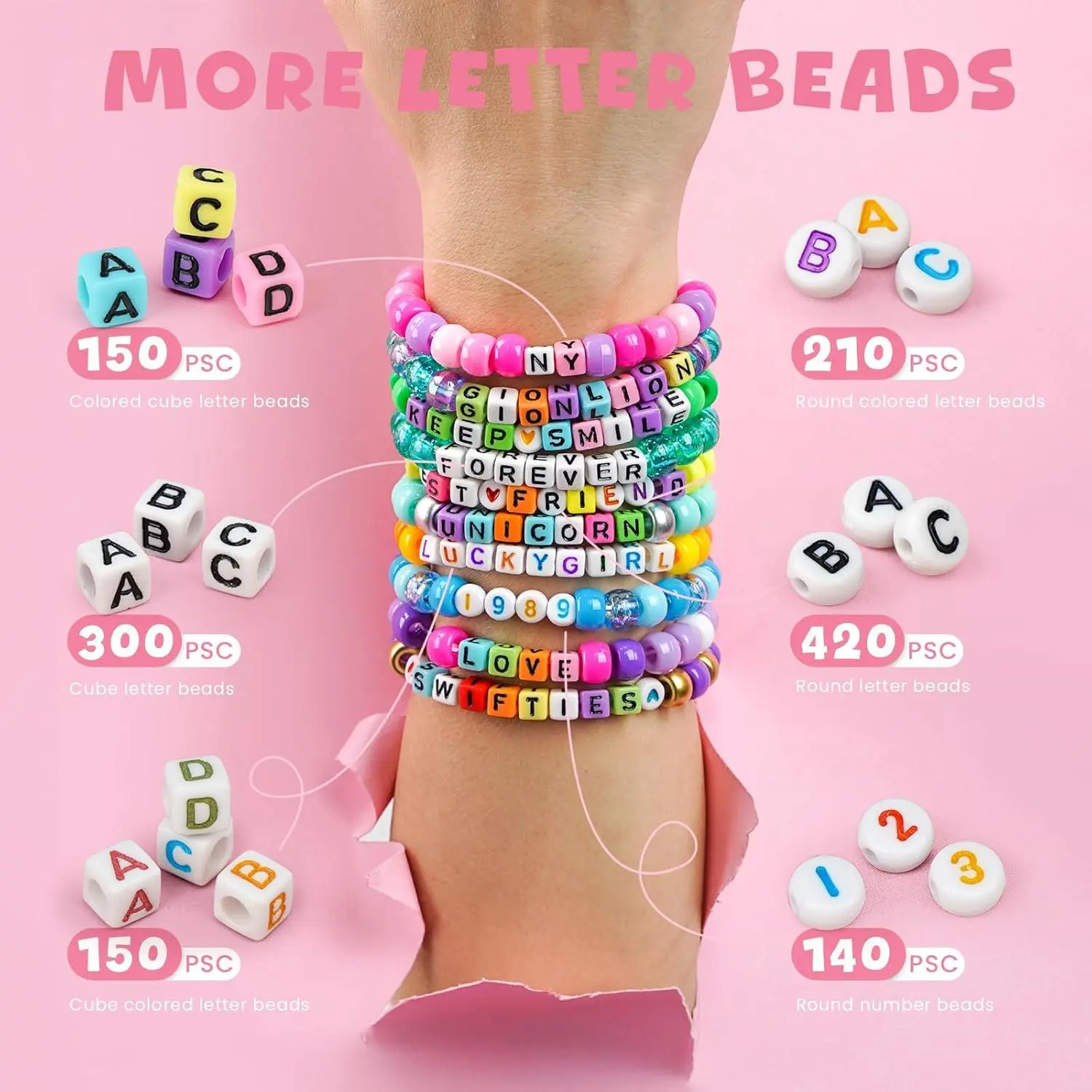 Gionlion 4200Pcs Pony Beads for Bracelet Making Kit, 48 Colors Kandi Beads Bracelet Kit, 2500PCS Rainbow Candy, 1700PCS Friendship Letter Bead with 20 Meter Elastic Strings for Jewelry Making