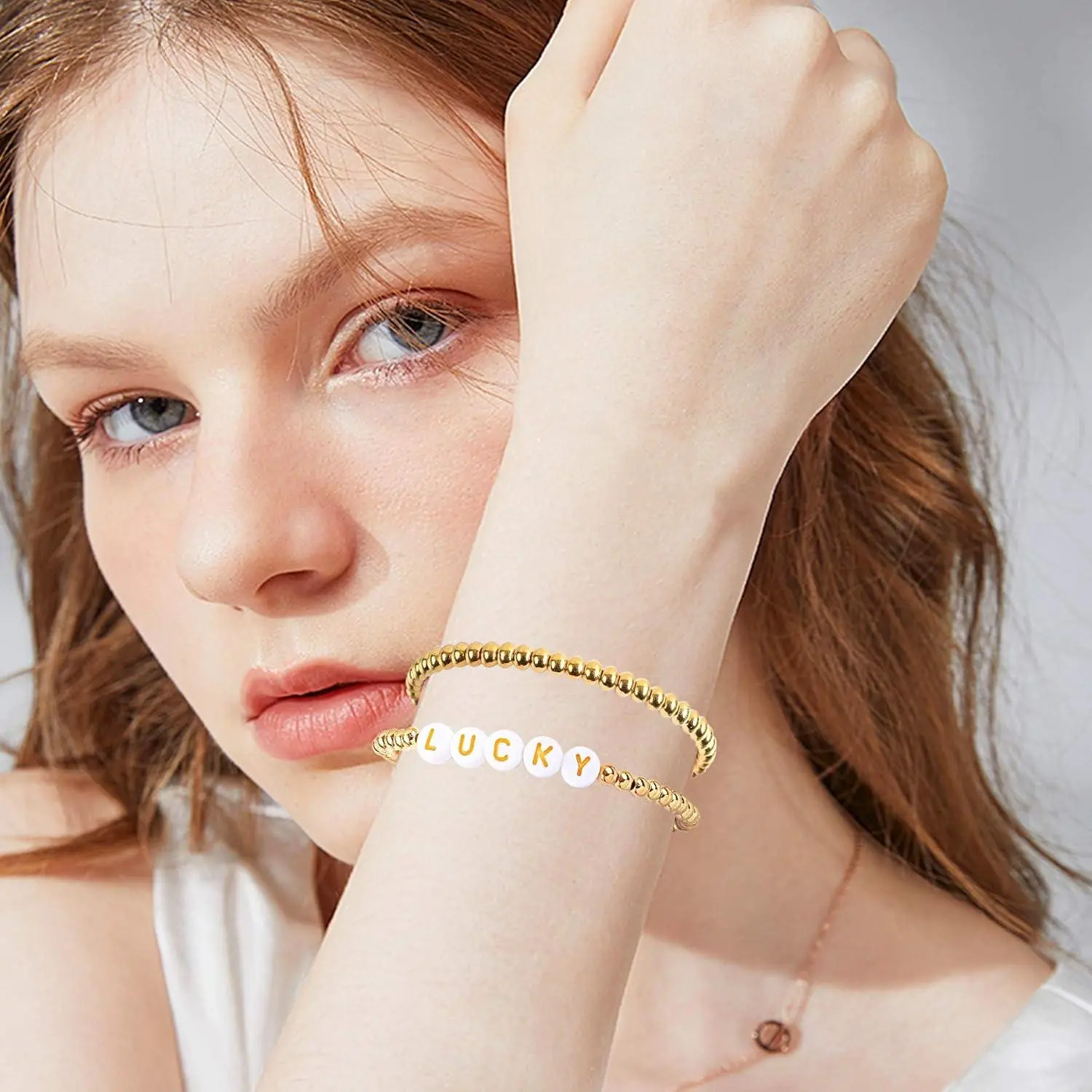 PAVOI Beaded Bracelet for Women - 14K Gold Plated Lightweight Womens Ball Bracelet - Gold Bracelets Cute Stackable Jewelry