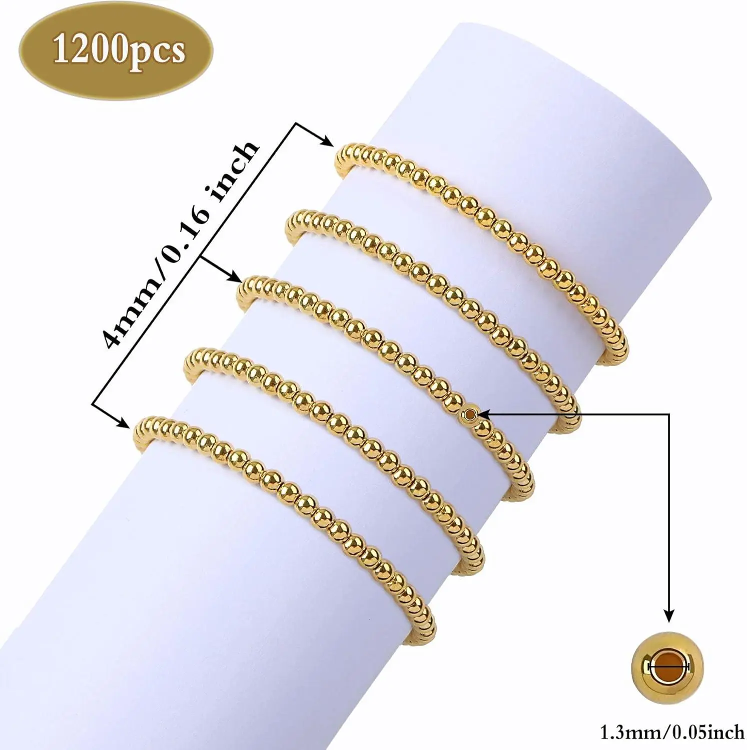 DECYOOL 1200Pcs 4mm Smooth Round Beads Gold Spacer Loose Ball Beads for Bracelet Jewelry Making Craft