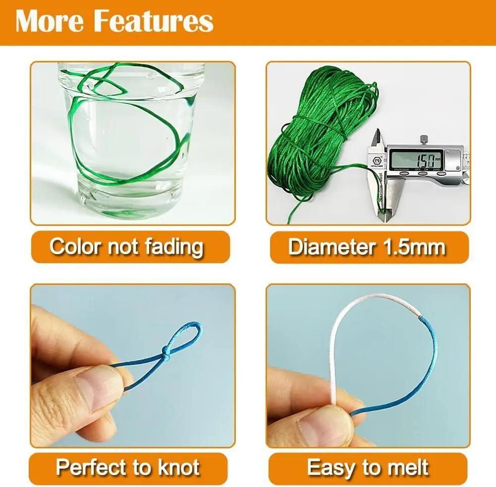 Ewparts Nylon String for Bracelets Nylon Cord 1.5 mm 200 Yards Nylon Satin Cord Silk Beading Cord Bracelet String Waxed Trim Cord for Necklace String Macrame Kumihimo Lanyard String for Jewelry Making