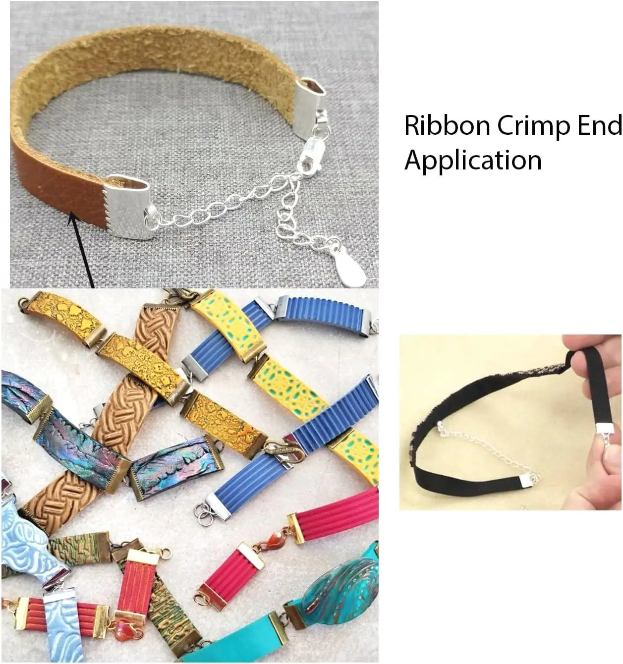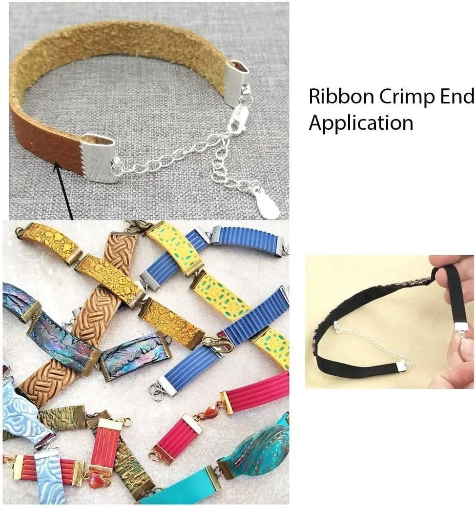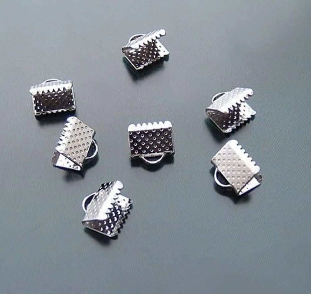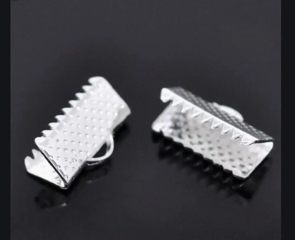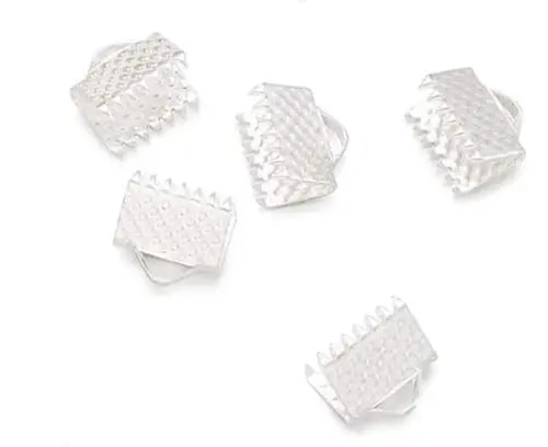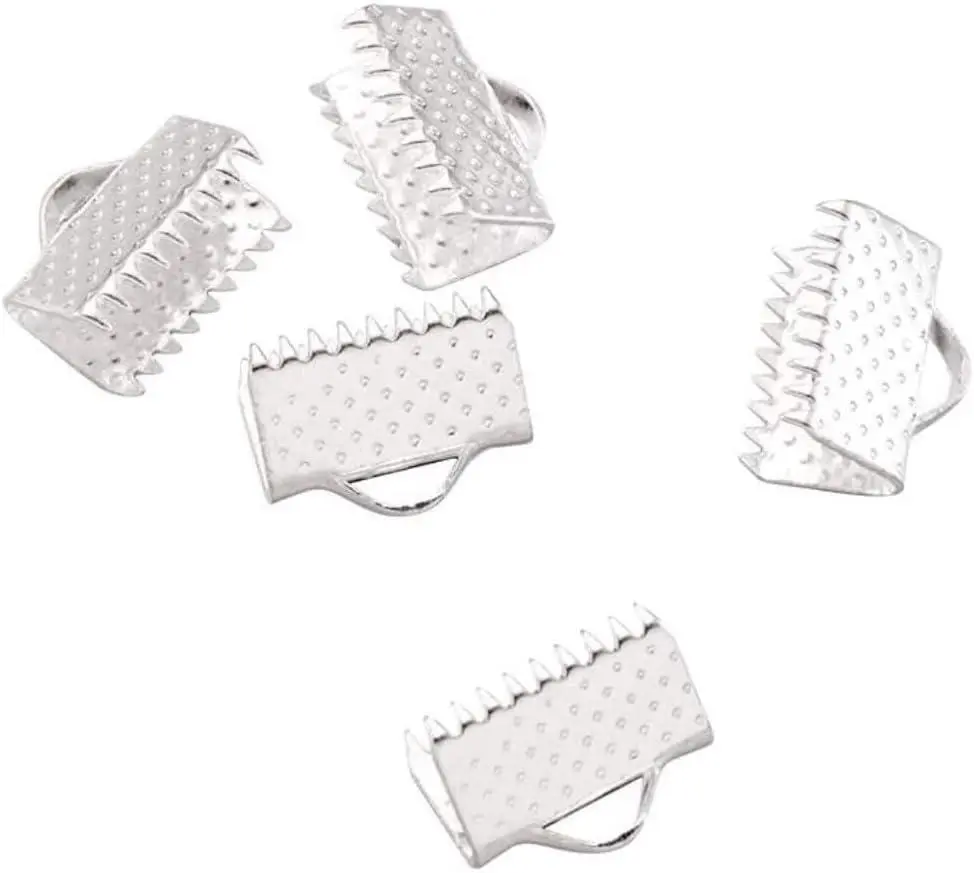 200pcs Ribbon Crimp End 10mm (0.4 Inch) Silver Plated Pinch Crimp Clamp Cord End Fastener Clasp for DIY Craft Jewelry Making CF158-10