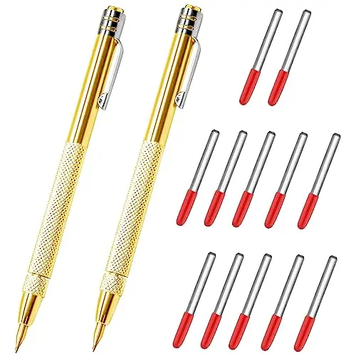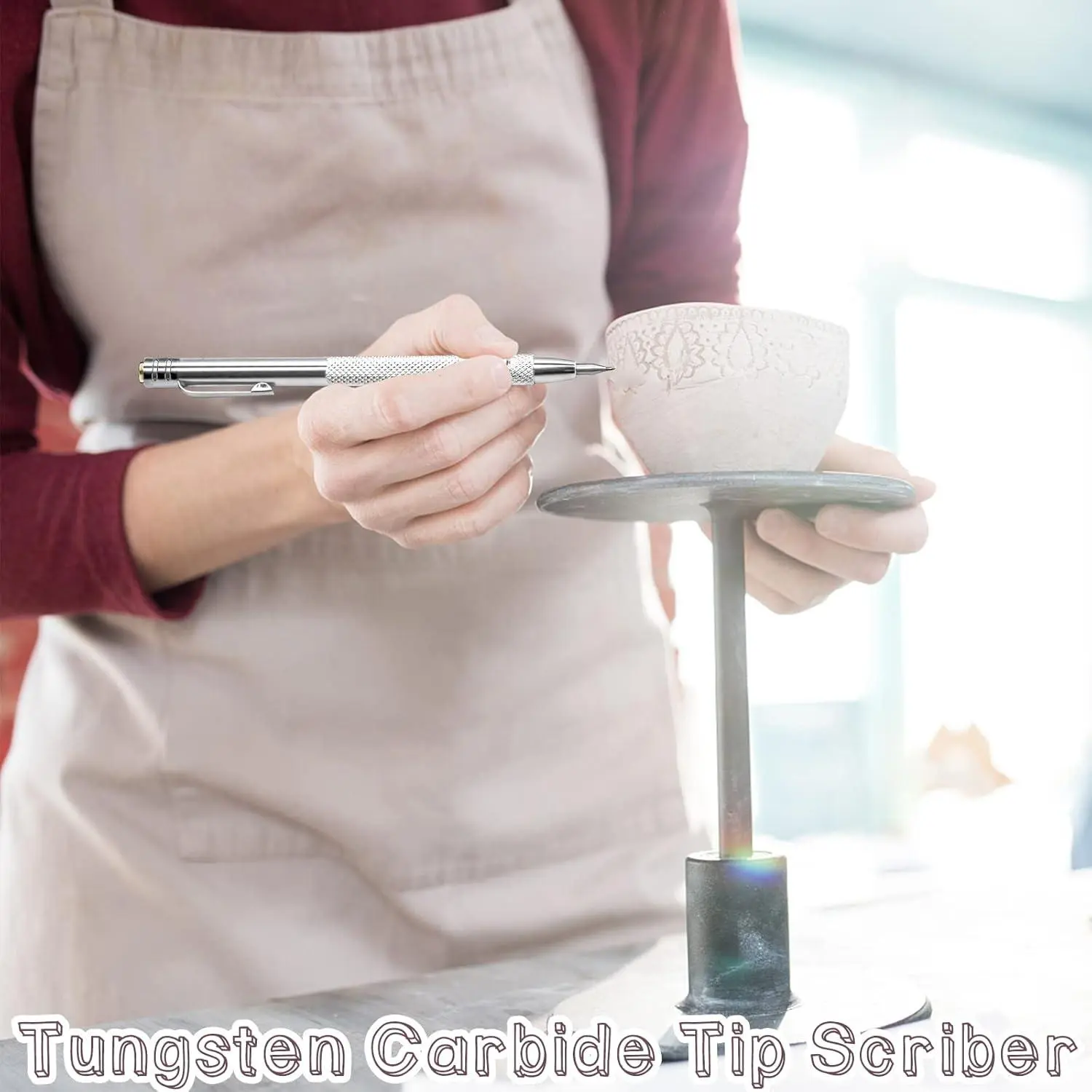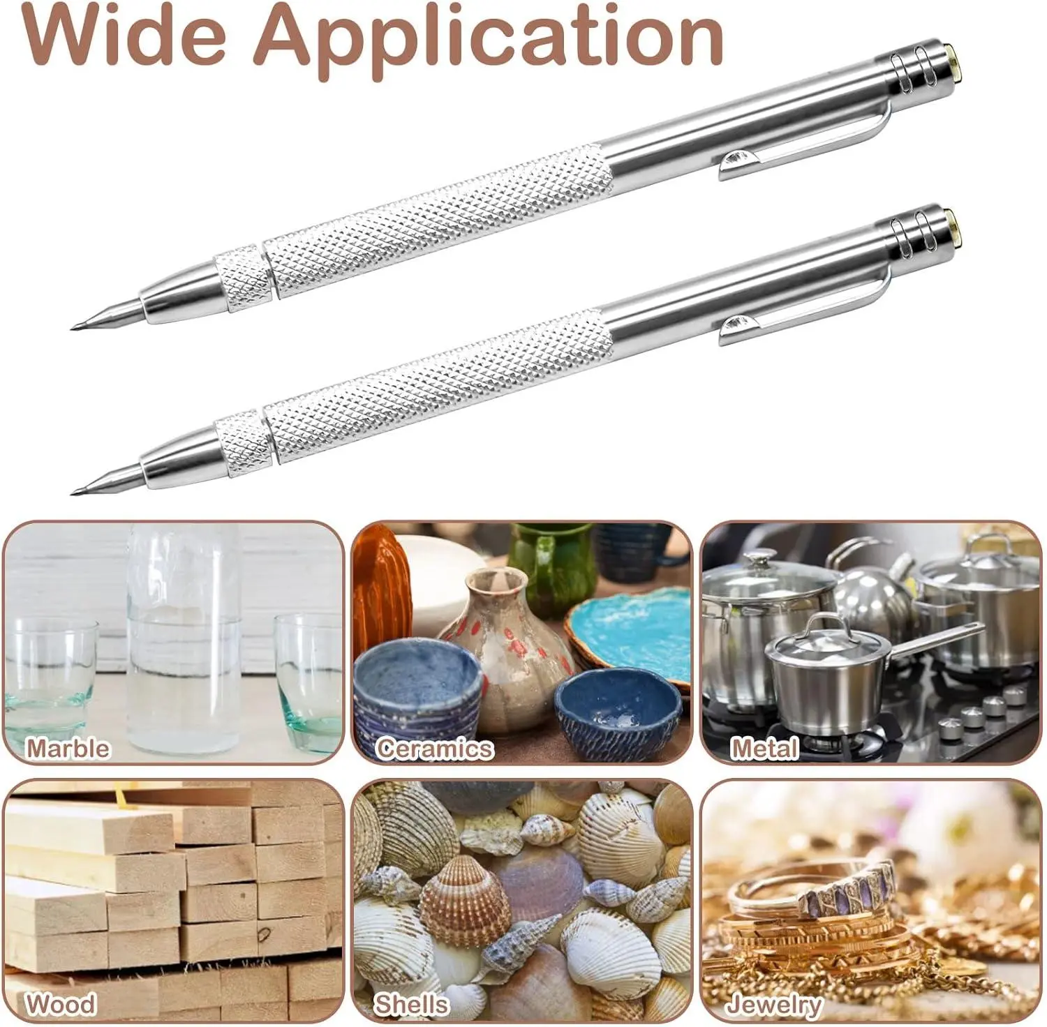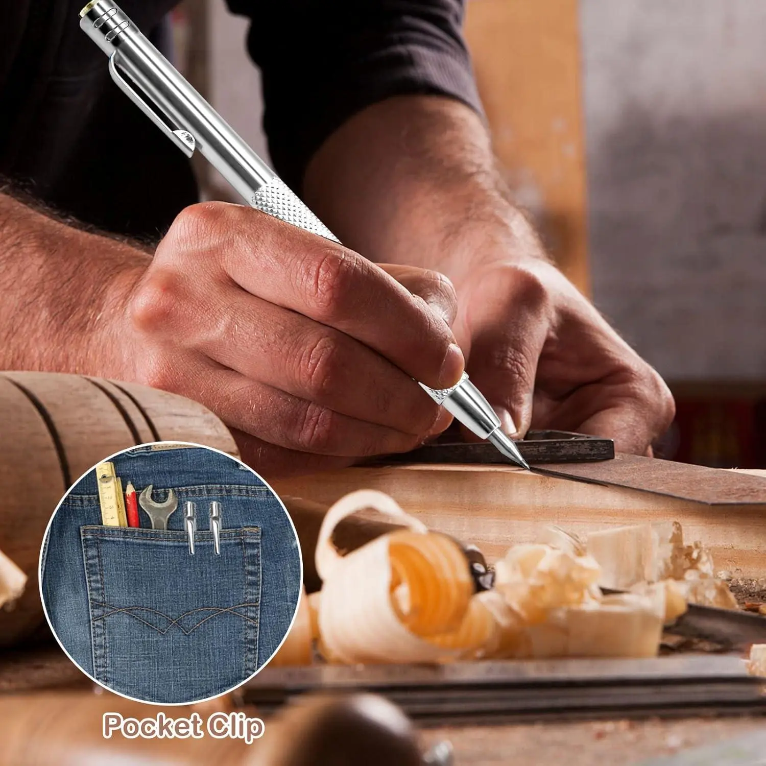2Pcs Tungsten Carbide Tip Scriber With 12 Replacement Marking Tip, Aluminium Magnet Carbide Scribe Tool Etching Pen With Clip, Metal Engraving Pen for Glass / Ceramics / Hardened Steel / Metal Sheet