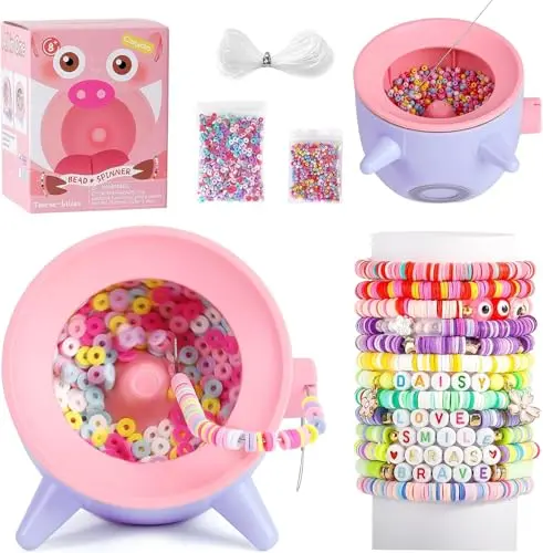 Caydo 2-in-1 Clay and Seed Bead Spinner for Jewelry Making, Electric Bead Spinner, Bracelet Maker Machine, Necklace Making Machine with Bead Needles and Thread for Adult & Craft Lover, Purple