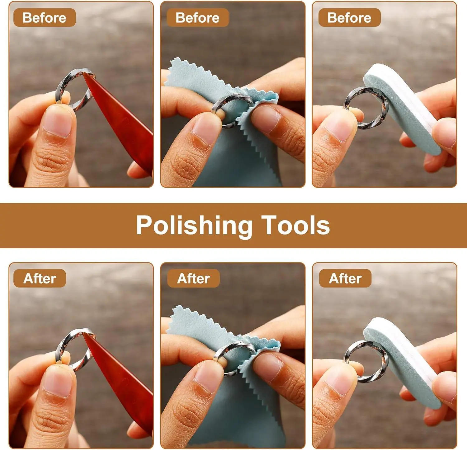 11 Pieces Metal Us UK Ring Mandrel Set, Size 1-13 with Half Size Ring Sizer Gauge Jewelry Mandrel Jewelry Hammer Adjuster Polishing Cloth Polishing Stick Polished Agate Knife Measuring Tool(Black)