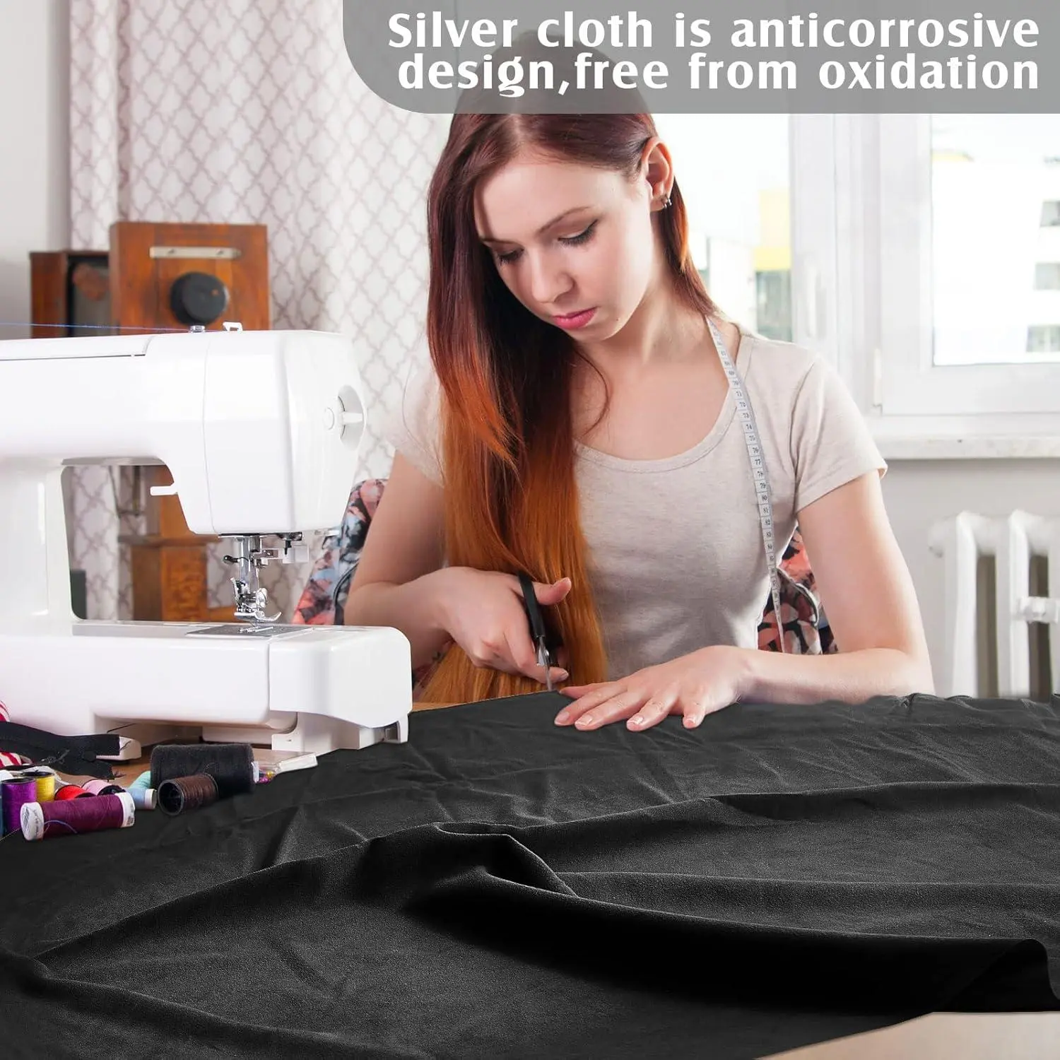 Jecery 2 Yard Anti Tarnish Silver Cloth Luxury Polishing Cloth by The Yard for Jewelry Silverware Flatware Silversmith Storage (Black)