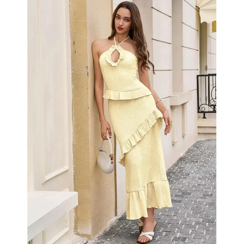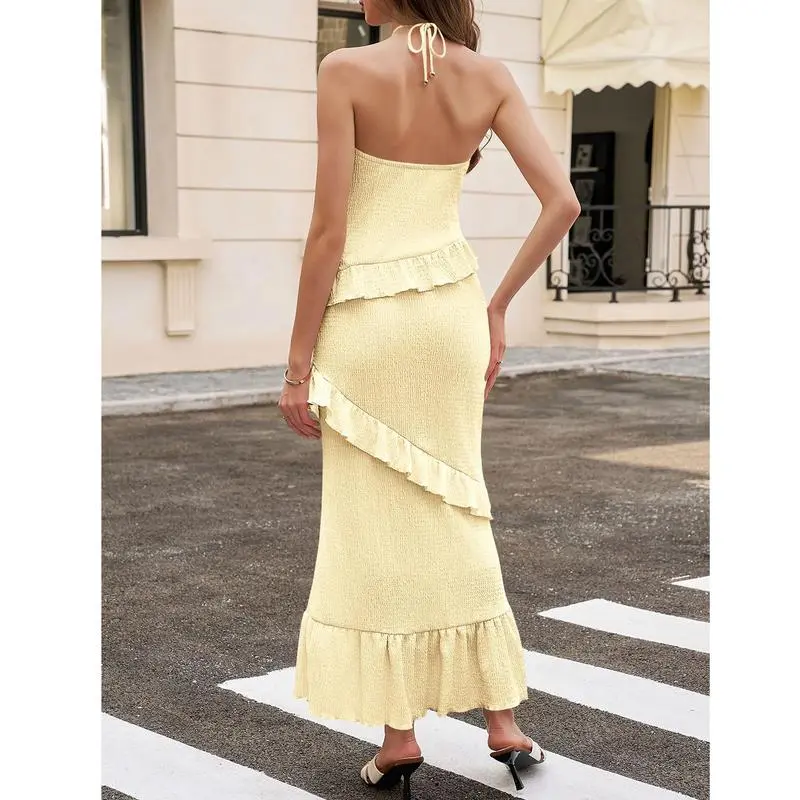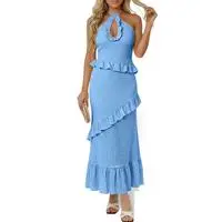 Women's Sexy Halter Maxi Dress Cutout Sleeveless Ruffle Tassel Backless Party Club Summer Dresses