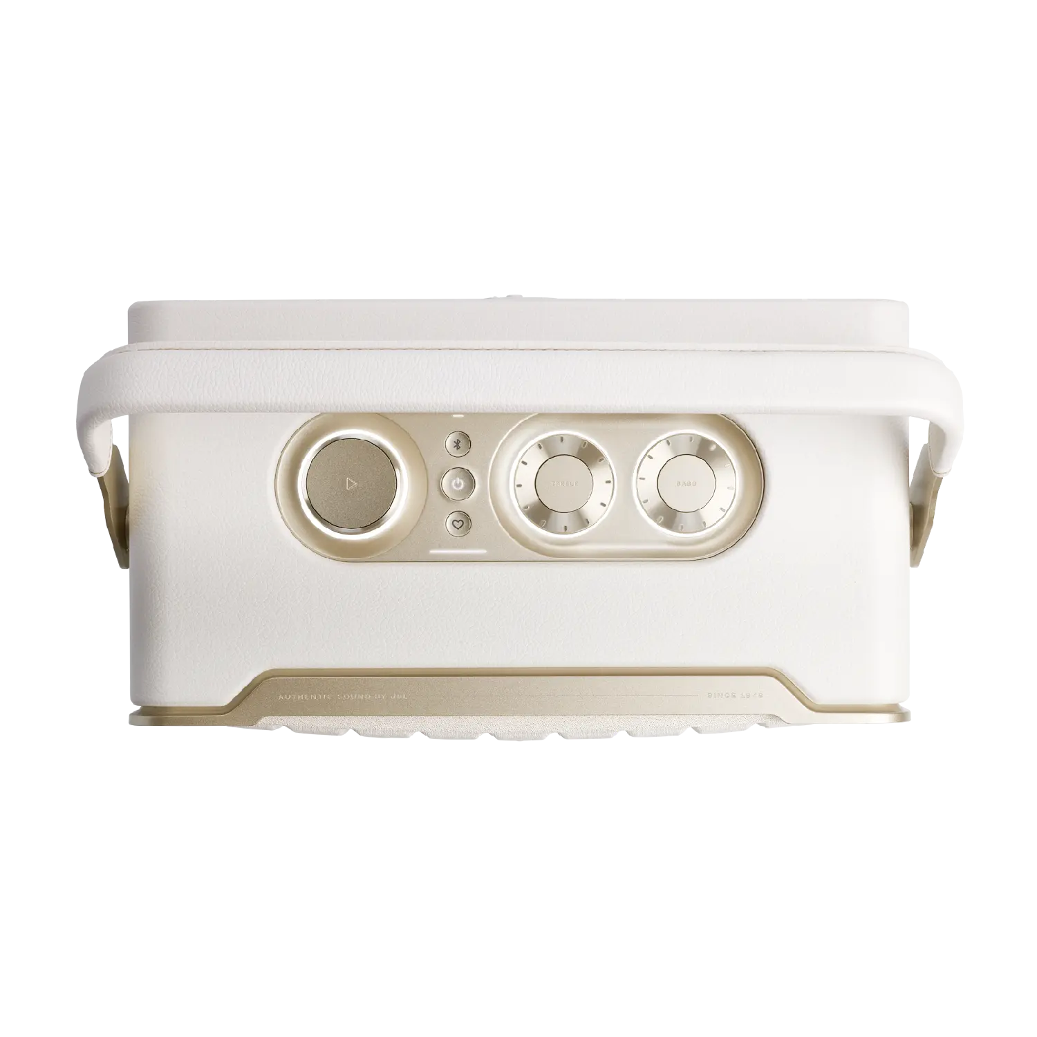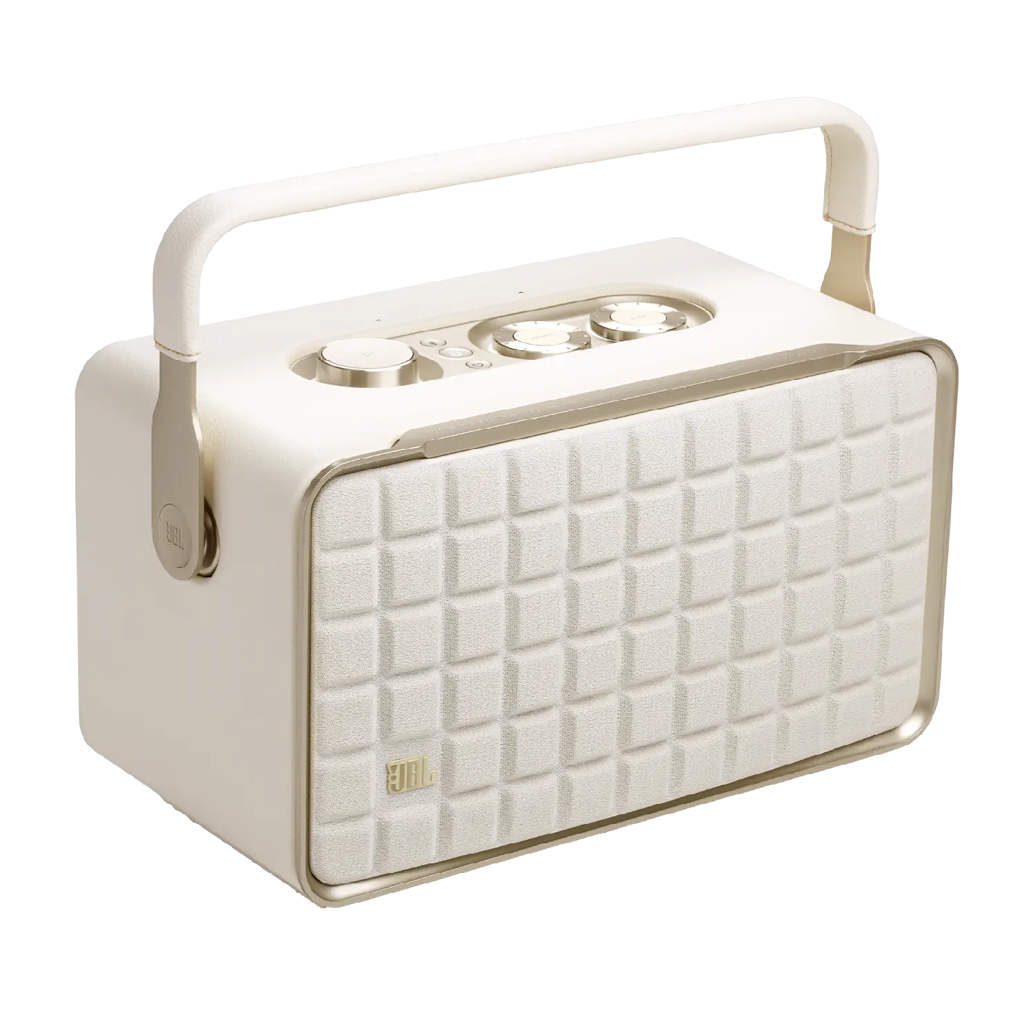 The JBL Authentics 300 delivers iconic style inspired by classic JBL retro designs, in a portable home speaker that looks great in any decor. It will easily fill any space, big or small, with superior JBL sound. And the speaker's convenient cast-aluminum handle, custom leather-like enclosure, and reimagined Quadrex grille really show the attention we paid to each visual detail, right down to the special JBL signature pattern on the down-firing passive radiator.