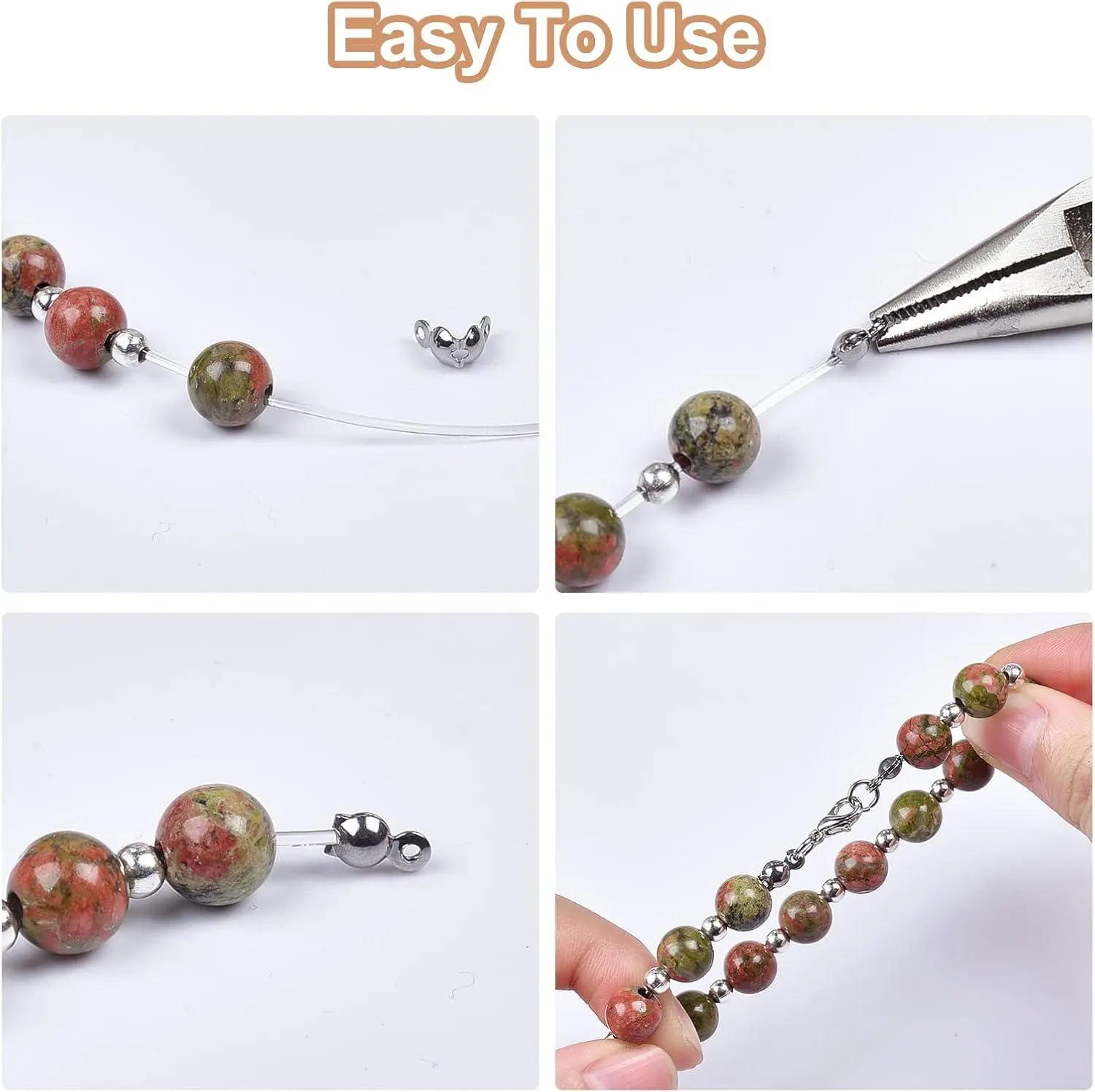 NBEADS 400 PCS 304 Stainless Steel Bead Tips, Open Clamshell Fold-Over Bead Tips Knot Covers End Caps Knots Crimp Findings for Jewelry Making Bracelets Necklaces - Golden & Stainless Steel Color