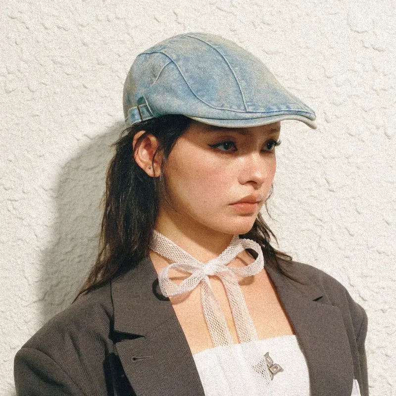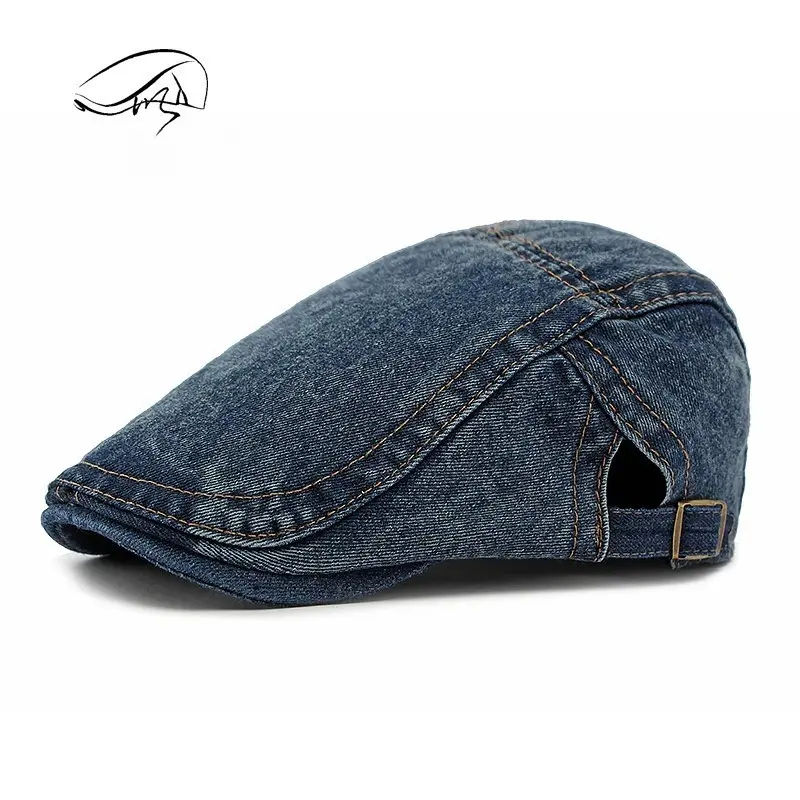 1pc Women's Classis Retro Beret Classis Denim Retro Newsboy Caps for Men,Summer Solid Washed Adjustable Flat Caps Visor Hat