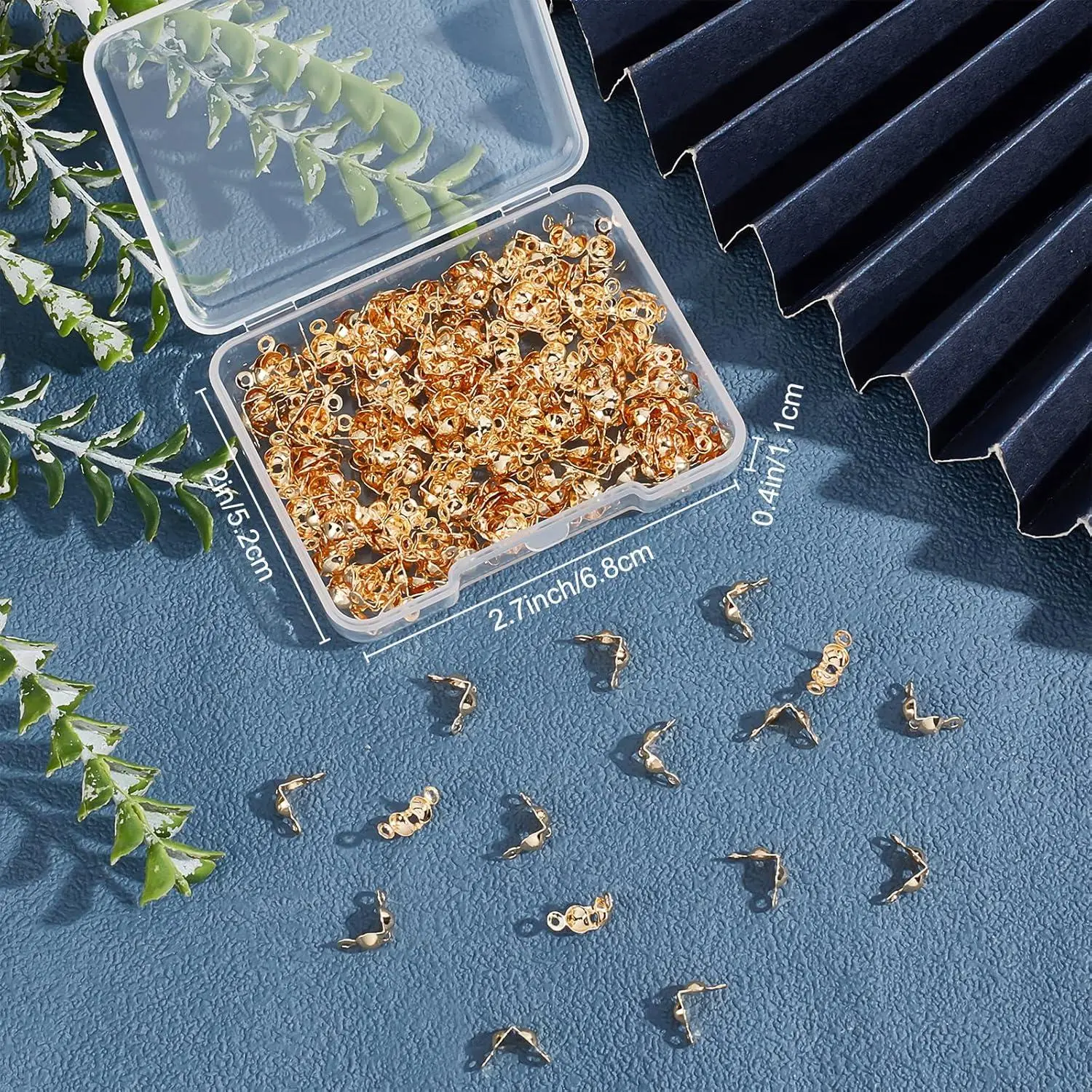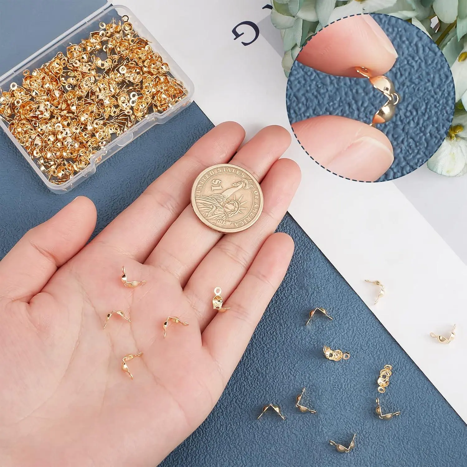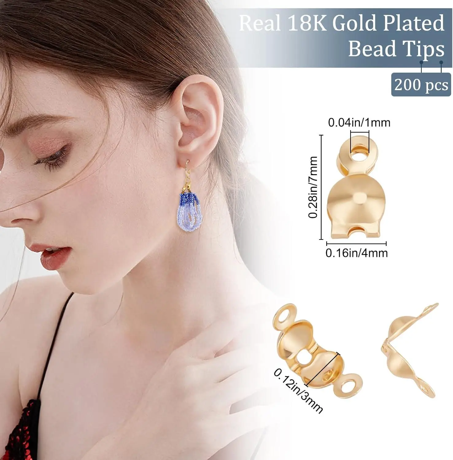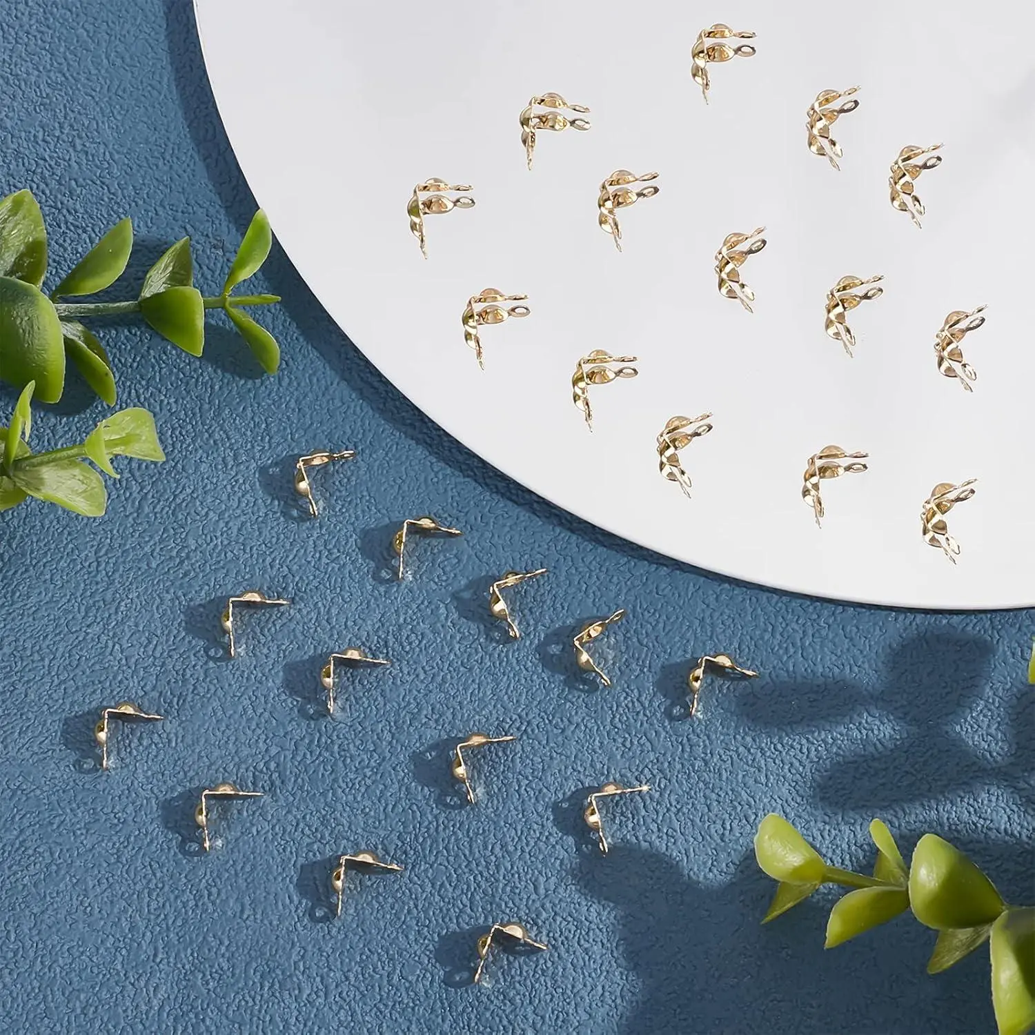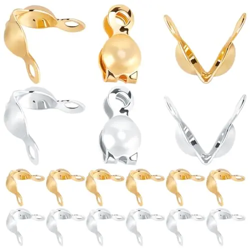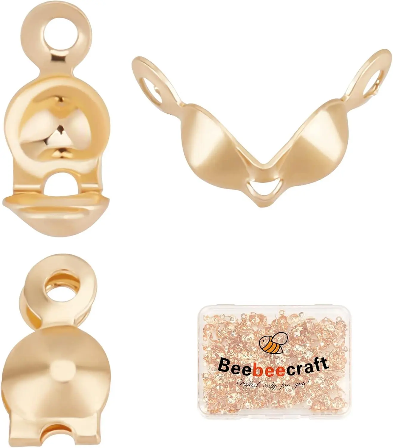 Beebeecraft 1 Box 200Pcs Bead Tips Knot Covers 18K Gold Plated Brass Clamshell Crimp Bead Tips Fold-Over Open End Caps for Jewelry Making DIY Bracelet Necklace Findings (3mm Cup, 1mm Hole)