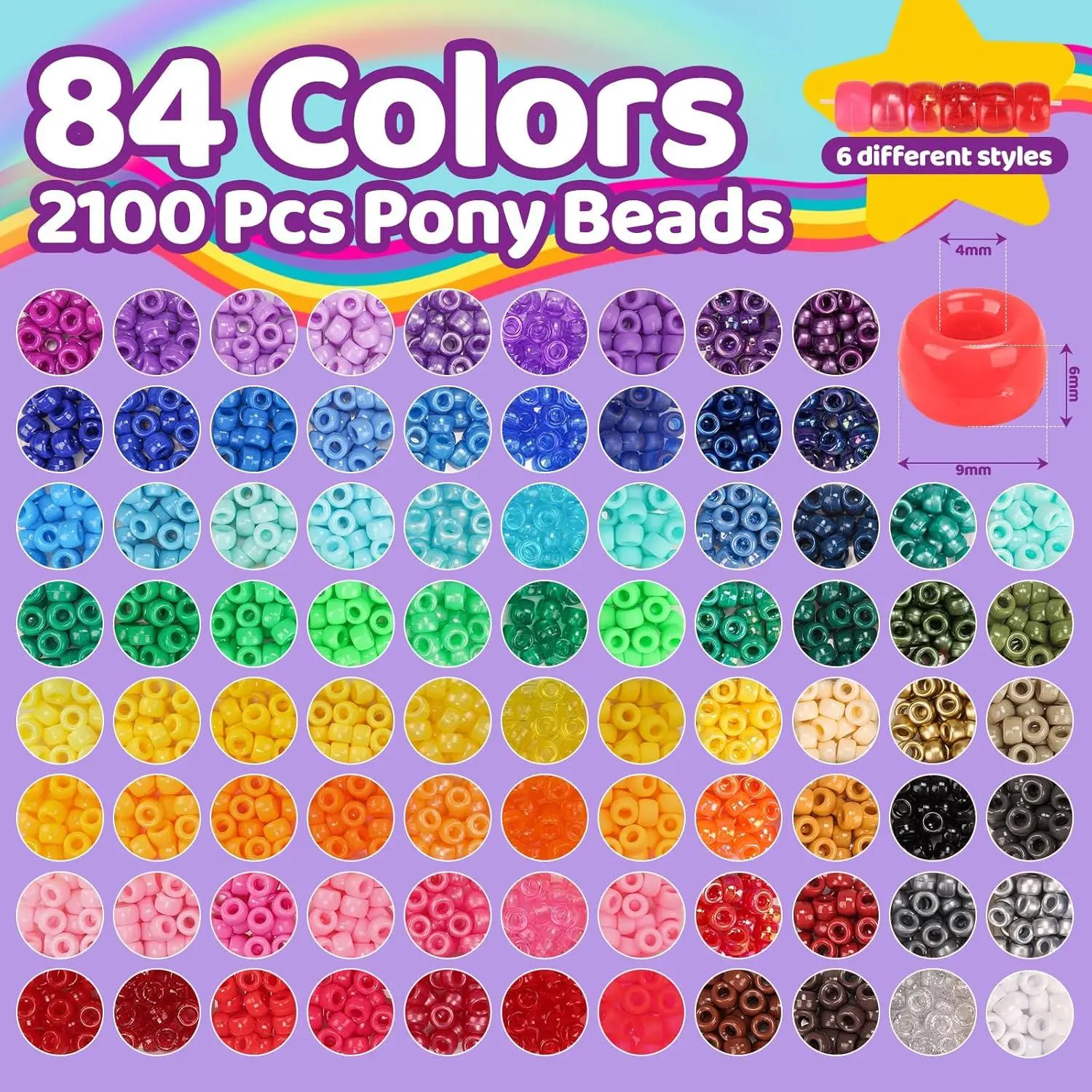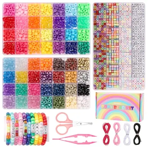Pizooro 5 Boxes Pony Beads Bracelet Making Kit,3700 Pcs Kandi Bead for Friendship Bracelets Making with Letter Beads,Shaped Beads and Strings,84 Colors Rainbow Bracelet Beads for Craft,Birthday Gifts