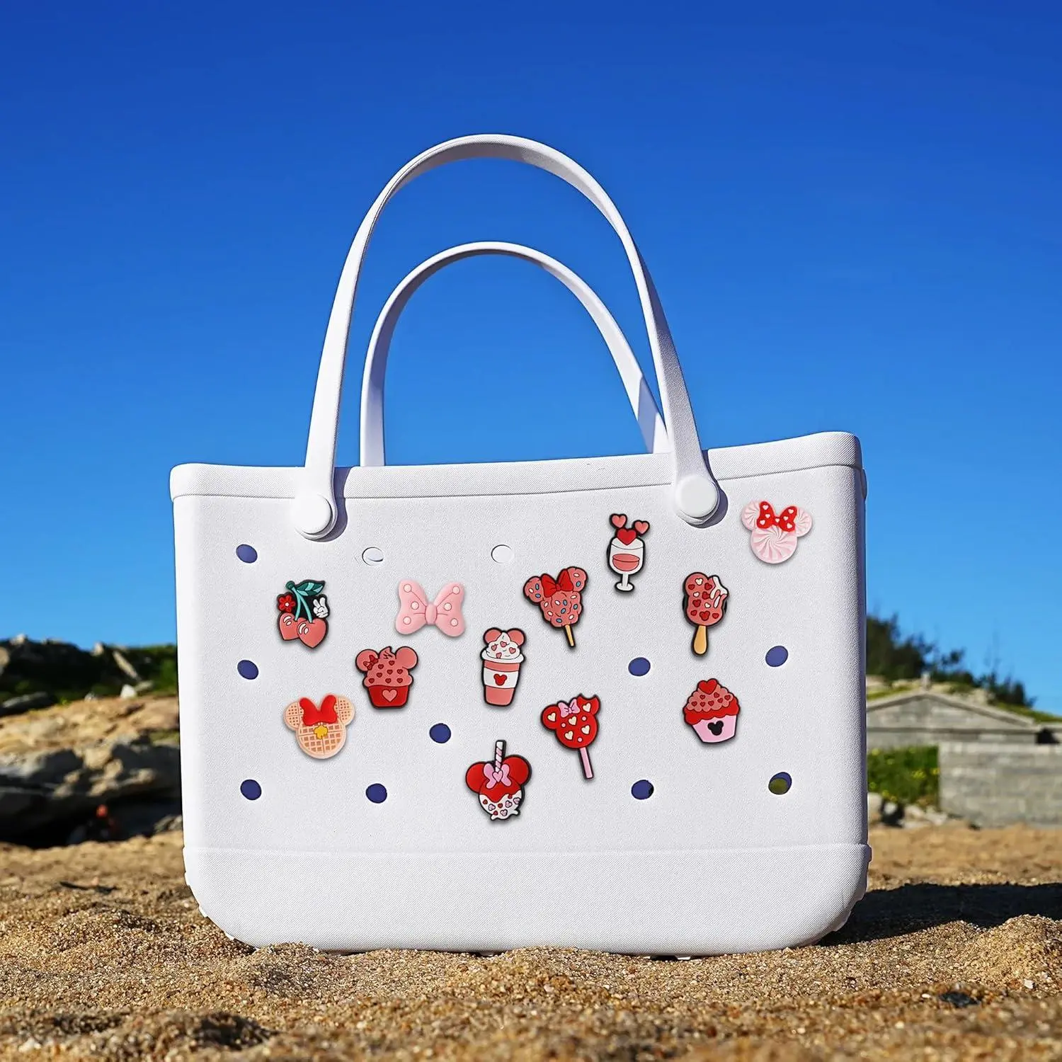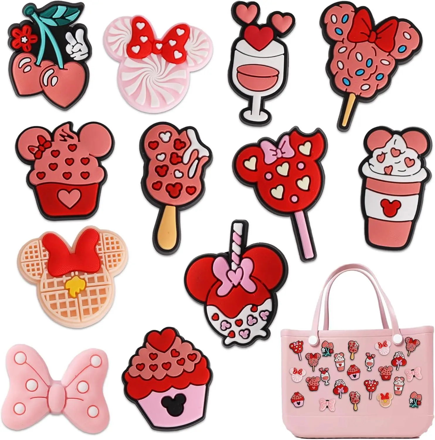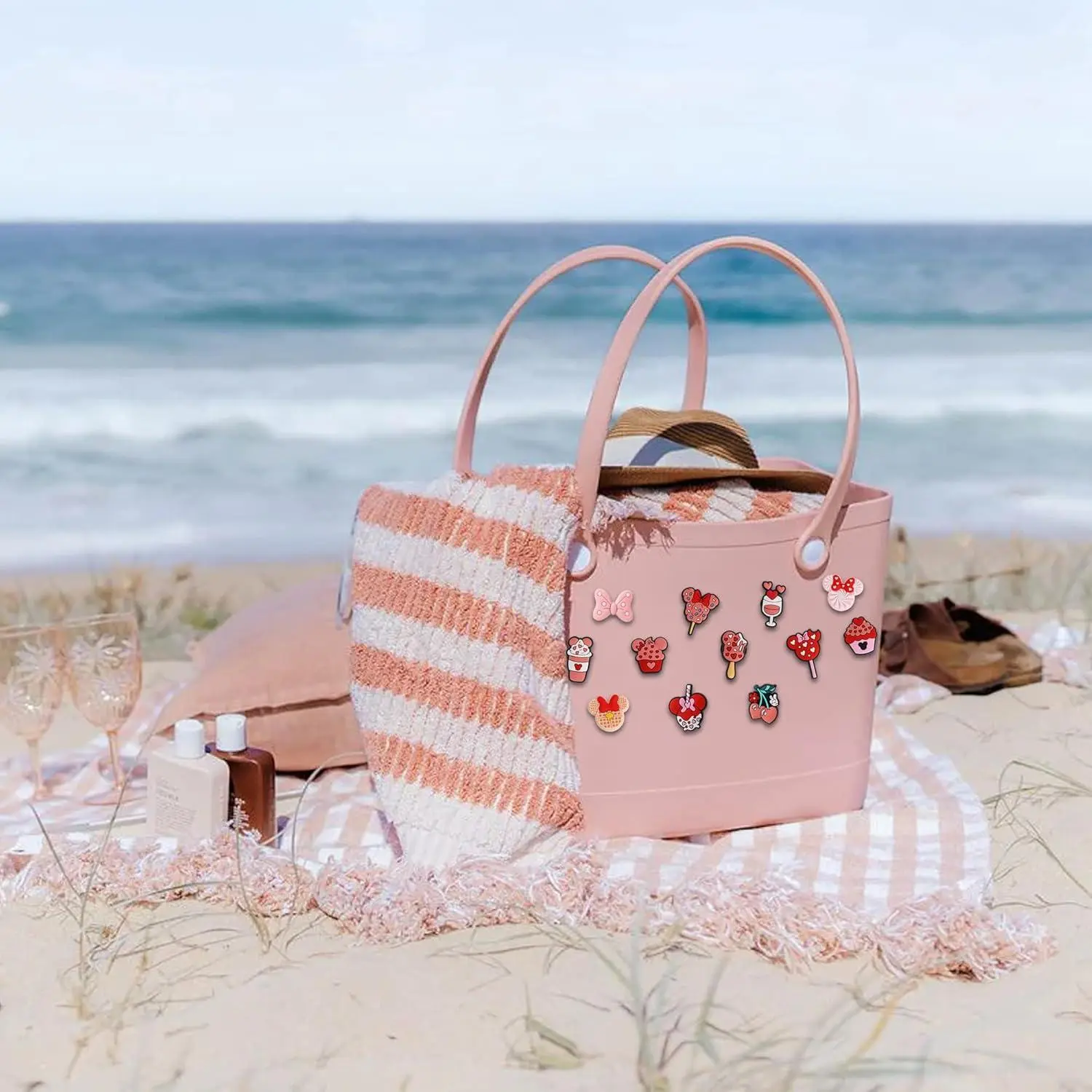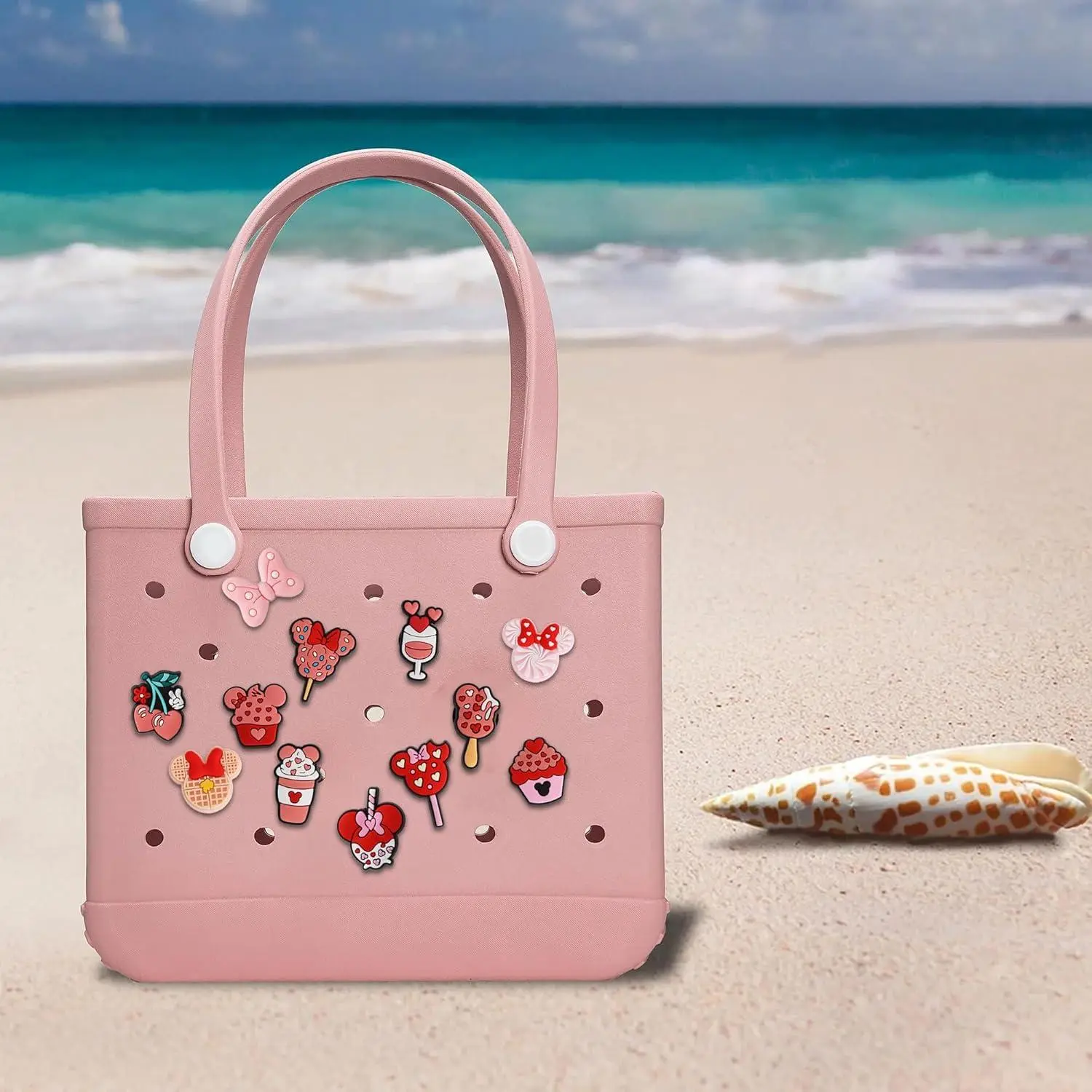 Beach Charms for Bogg Bag, Cute Pink Mouse Theme Decoration Charm Accessories for Rubber Tote Handbag Beach Bag
