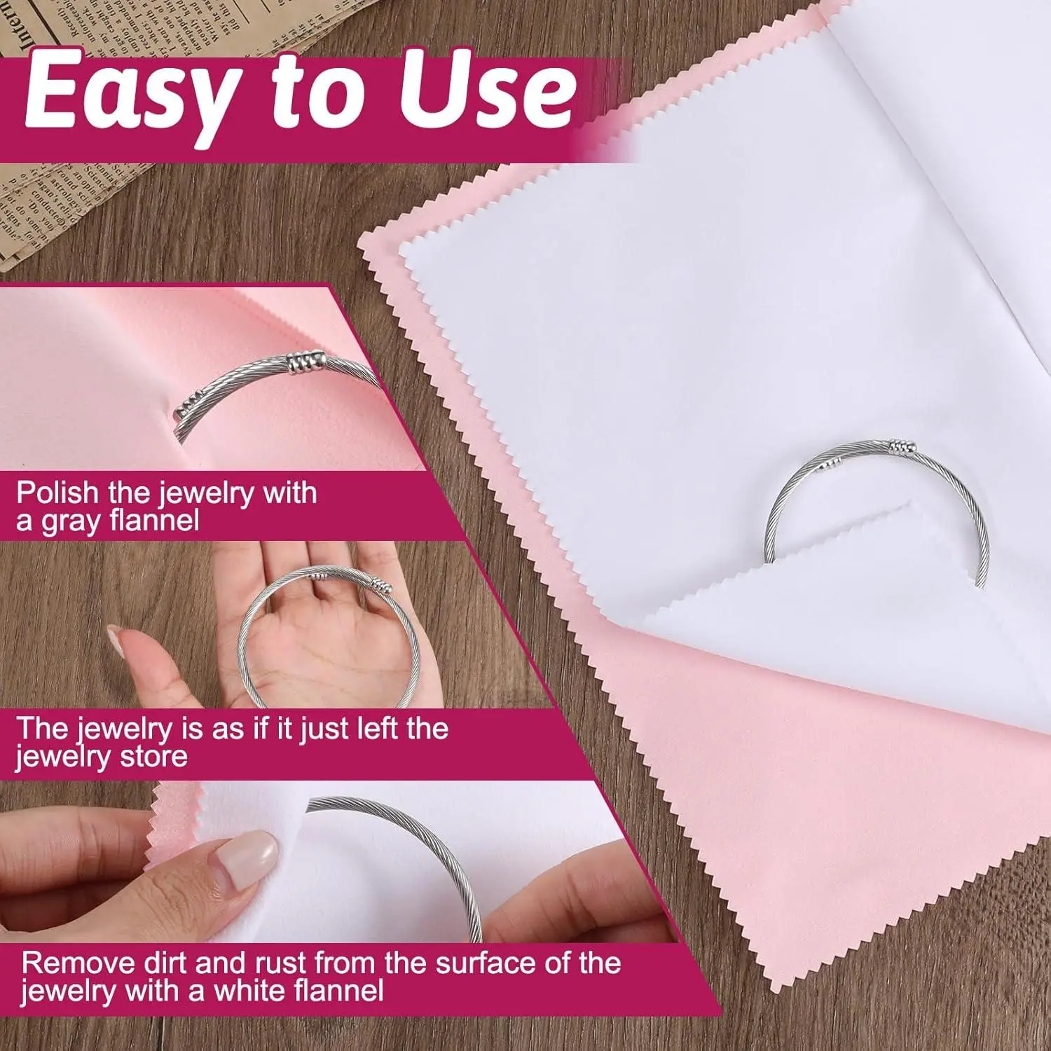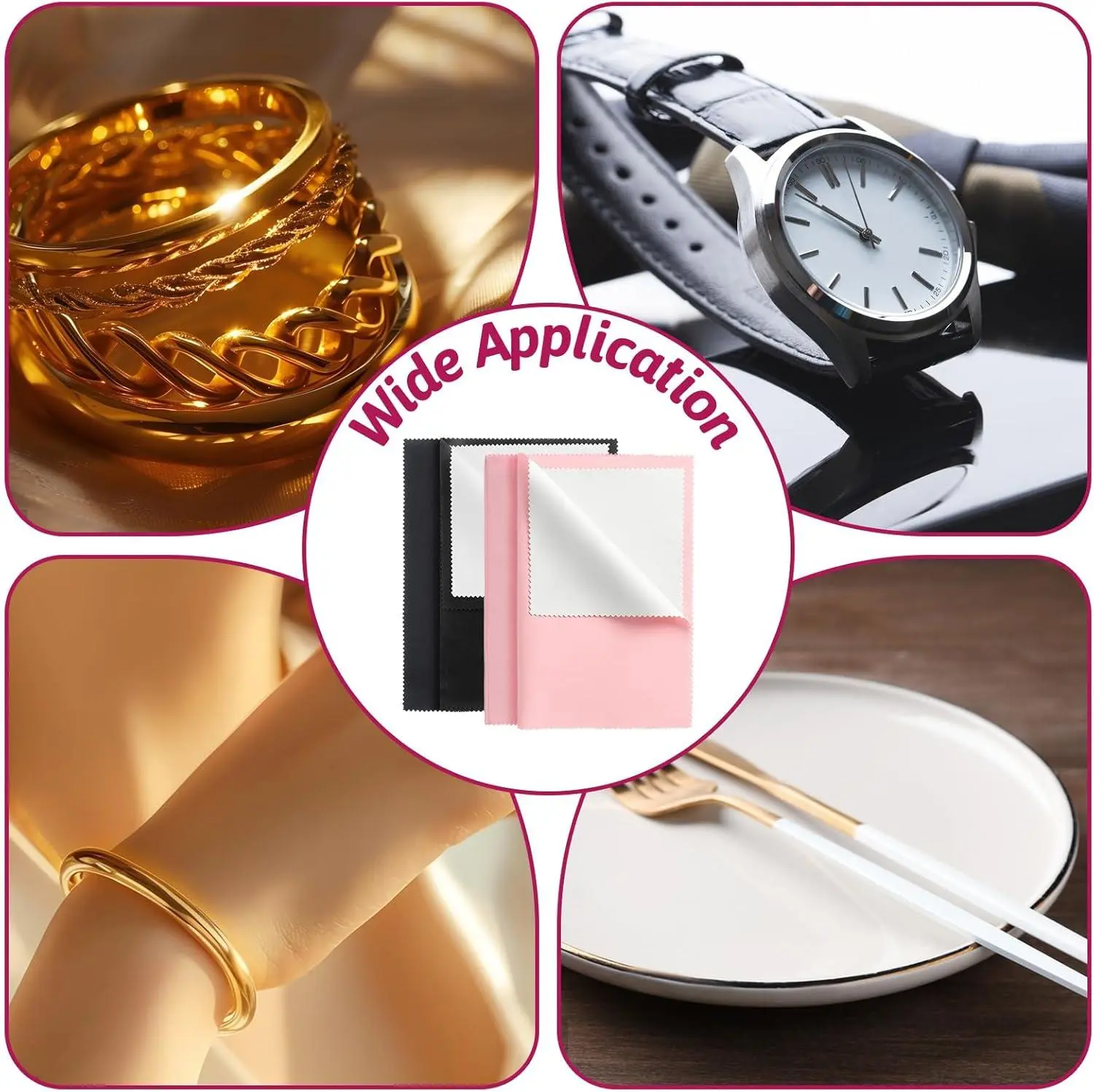 4 Pcs Jewelry Cleaning Cloths, Large 12"x9.8" Silver Polishing Cloth, Double-Sided Reusable Jewelers Cleaner Cloth for Gold, Silver, Platinum, Diamond, Watch, Coin