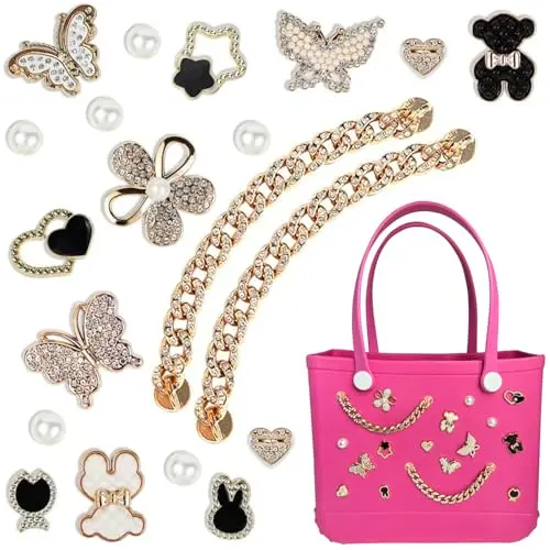 Charms for Bogg Bag,Pearls,Butterfly Flowers and Chain for Bogg Bag Accessories Charms(20 pcs)