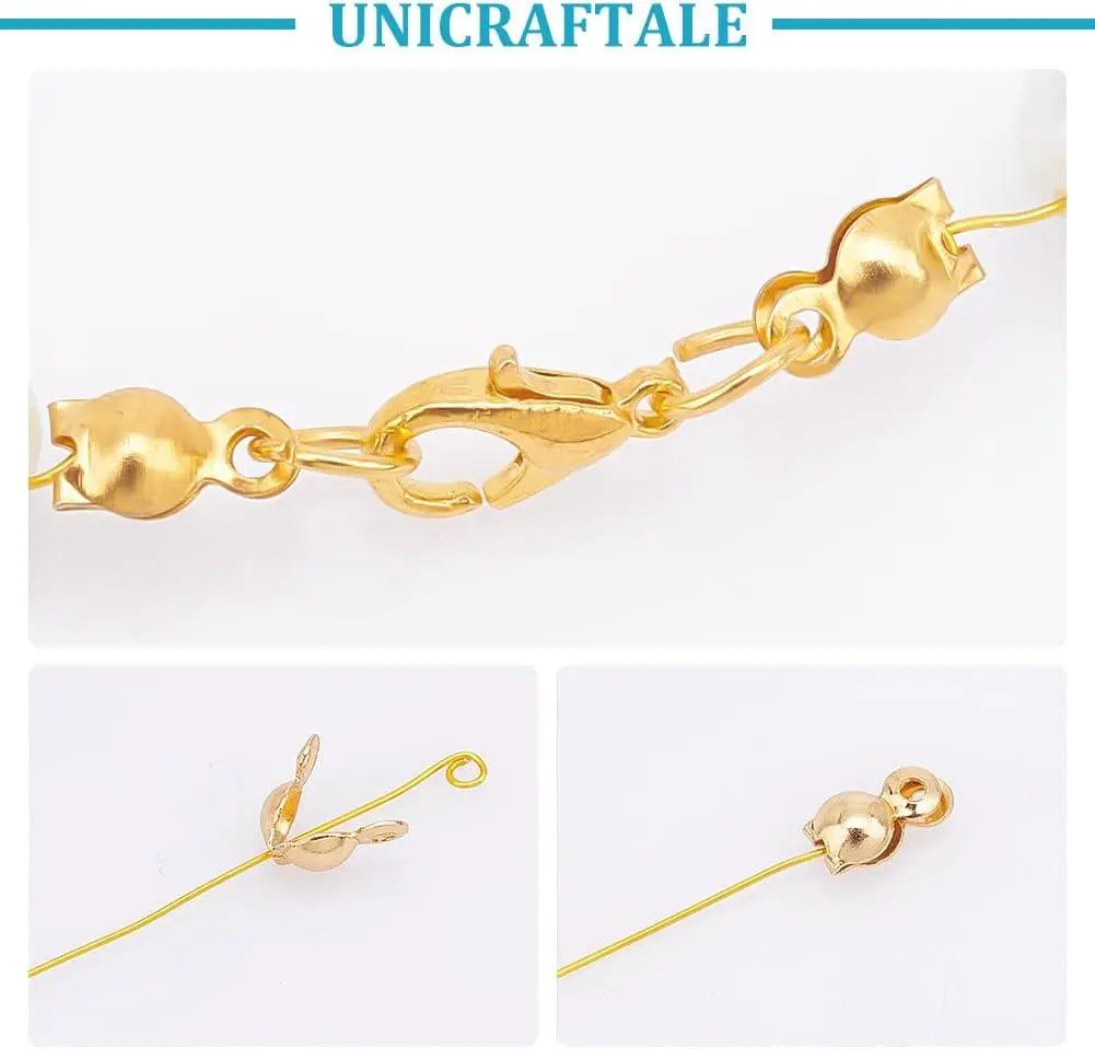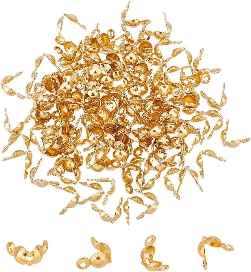 UNICRAFTALE 120pcs Golden Bead Tips Knot Covers Stainless Steel Calotte Ends Open Clamshell Knot Covers Fold-Over Bead Tips Small Hole End Caps for Knots & Crimp Findings Jewelry Making, 4mm Inner Dia