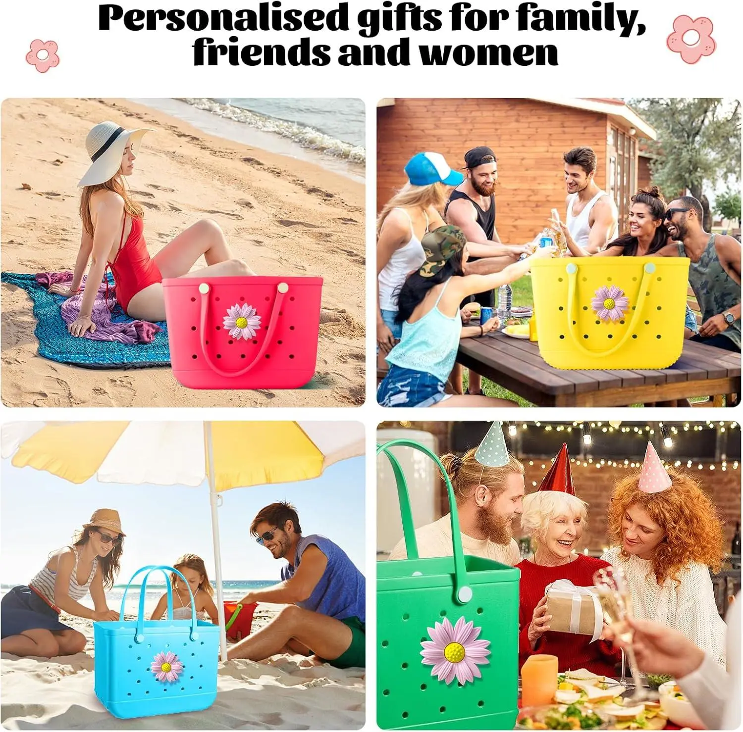 Charms for Bag, Insert PVC Rubber Personalizing Decorative Compatible with Handbag, Beach Tote, Rubber Beach Bag Accessories