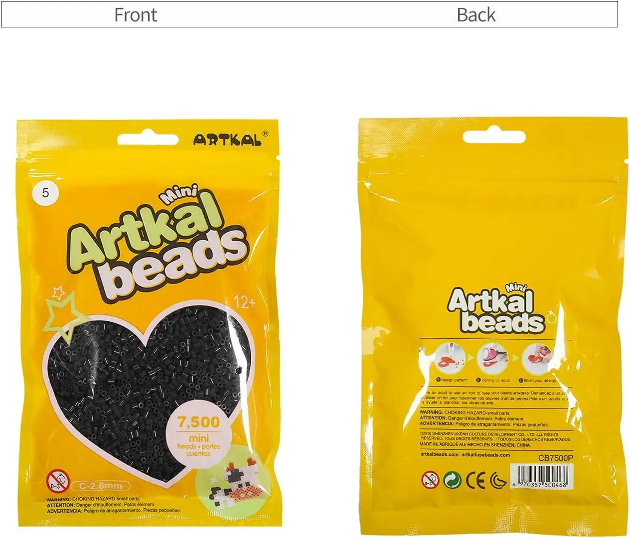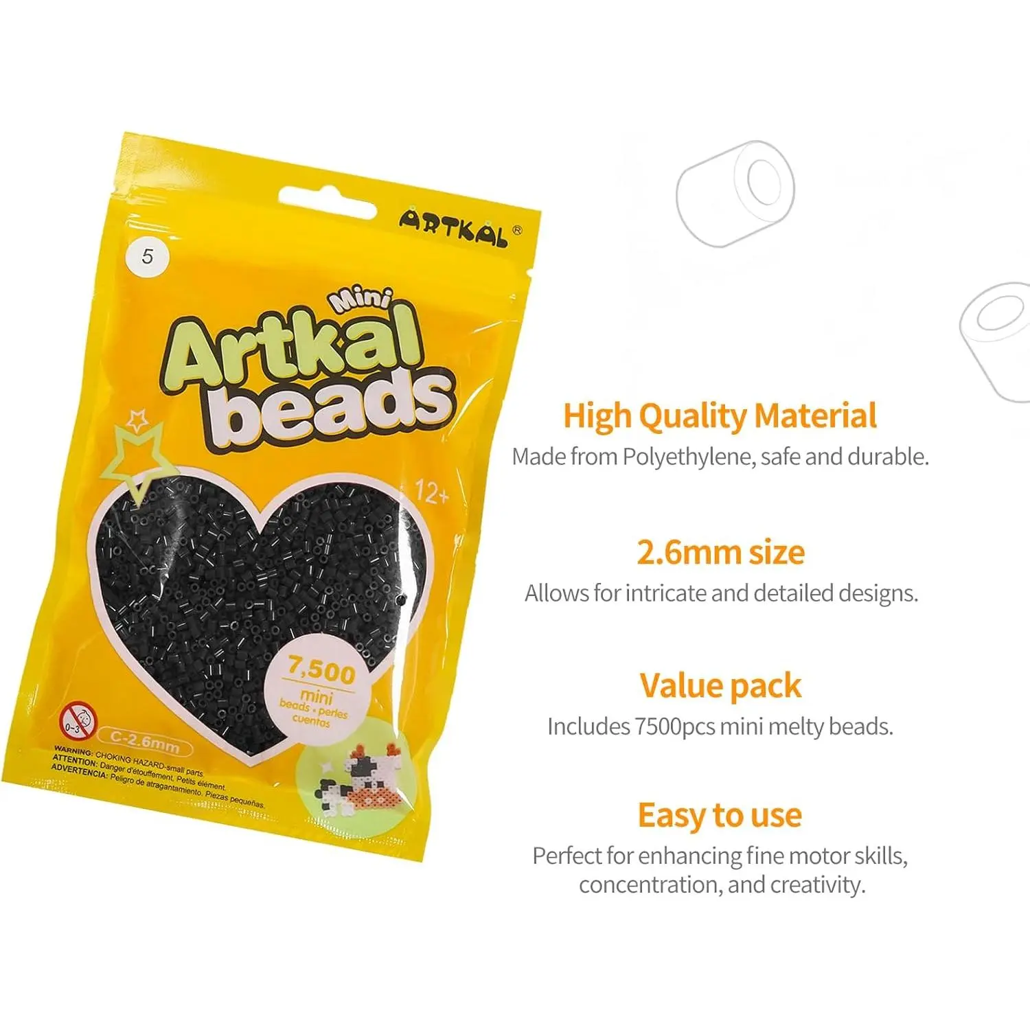 ARTKAL Mini Fuse Beads 7500 Melty Beads Compatible 2.6 mm Perler and Hama Bead (Black)