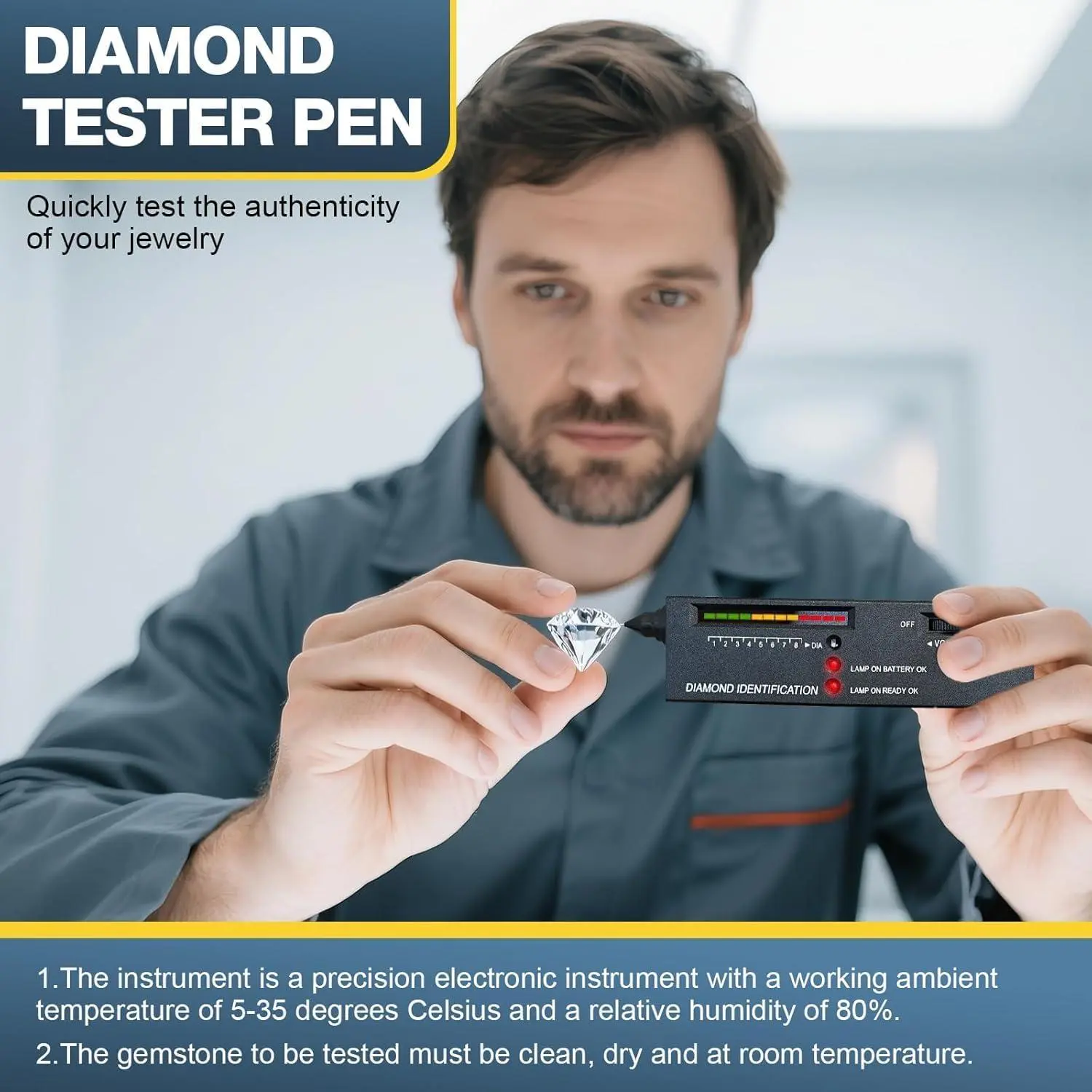 Diamond SE Tester- Professional Diamond & Moissanite Detector, 2-Second Results with LED/Sound Alert, Portable Gemstone Tester for Jewelry, Pawn Shops, Home Use (Includes Case & Batteries)