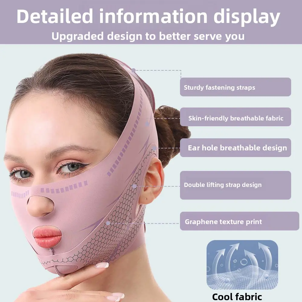 Graphene V-face lifting mask tightens facial contours, reduces nasolabial folds and double chin, sleep bandage is comfortable and breathable