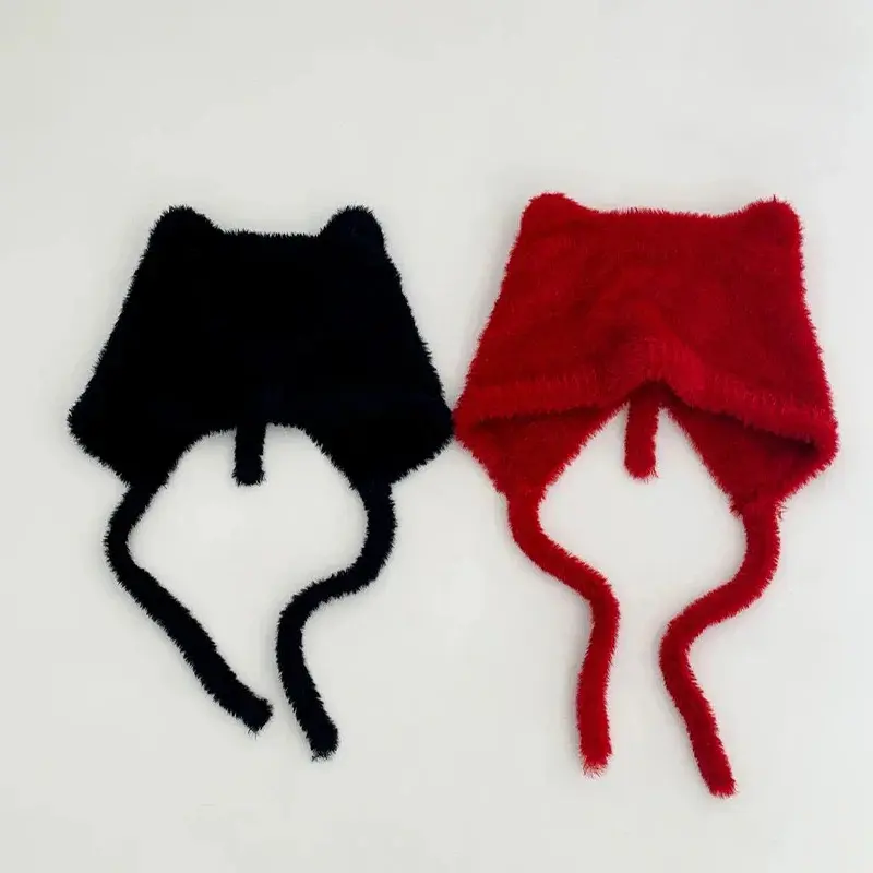 Winter Warm Unisex Y2k Beanies Leisure Outdoors Soft Fluffy Angola Winter Knitted Hat Female Plush Windproof Bonnet Skullies Cap