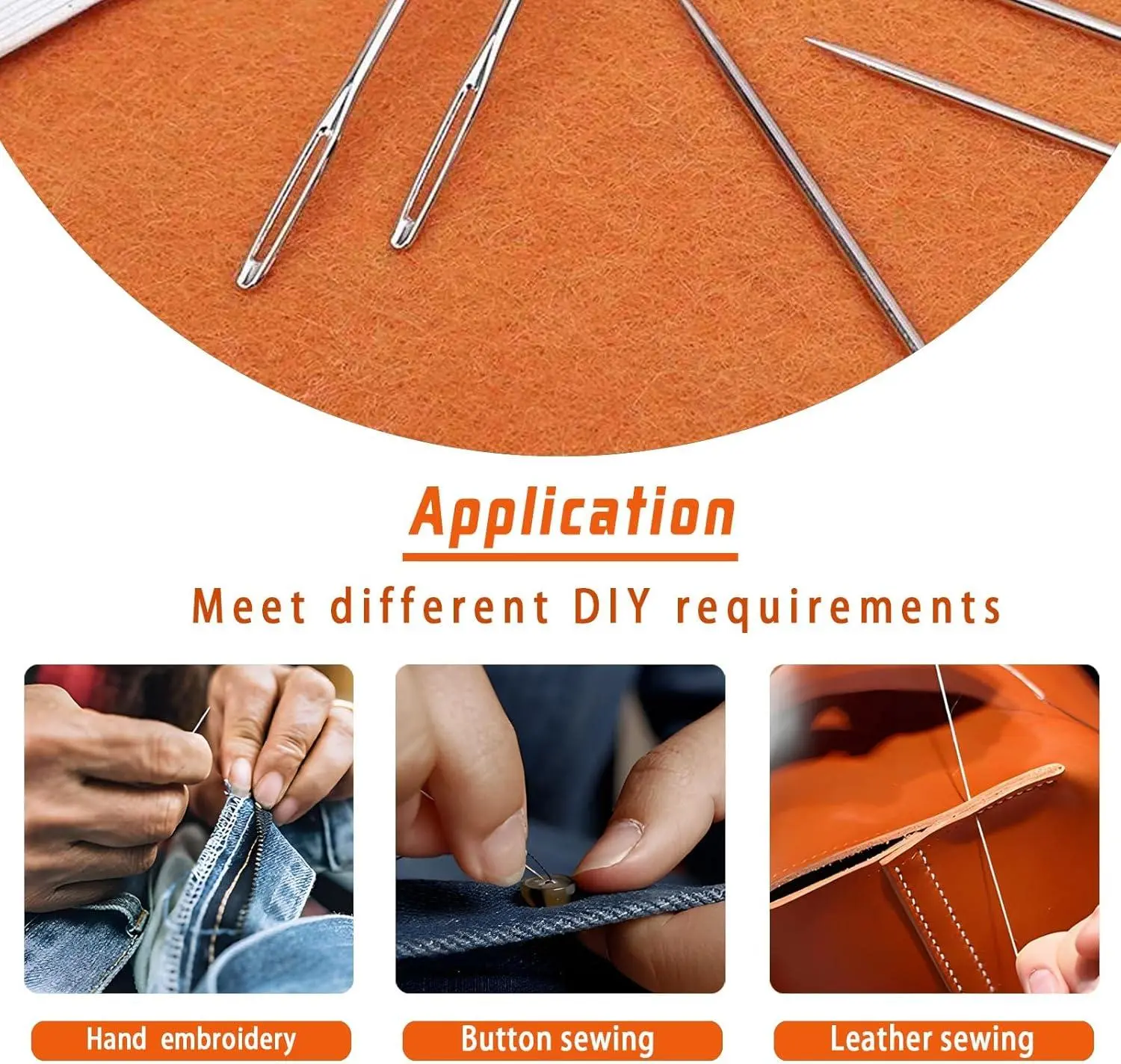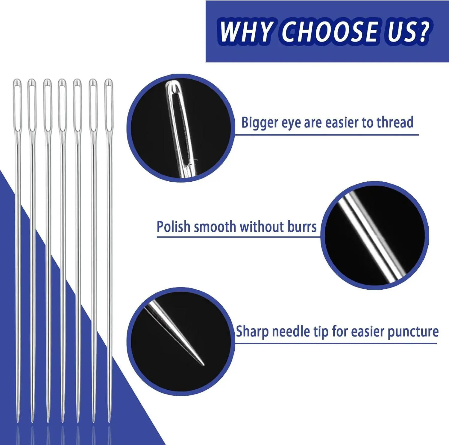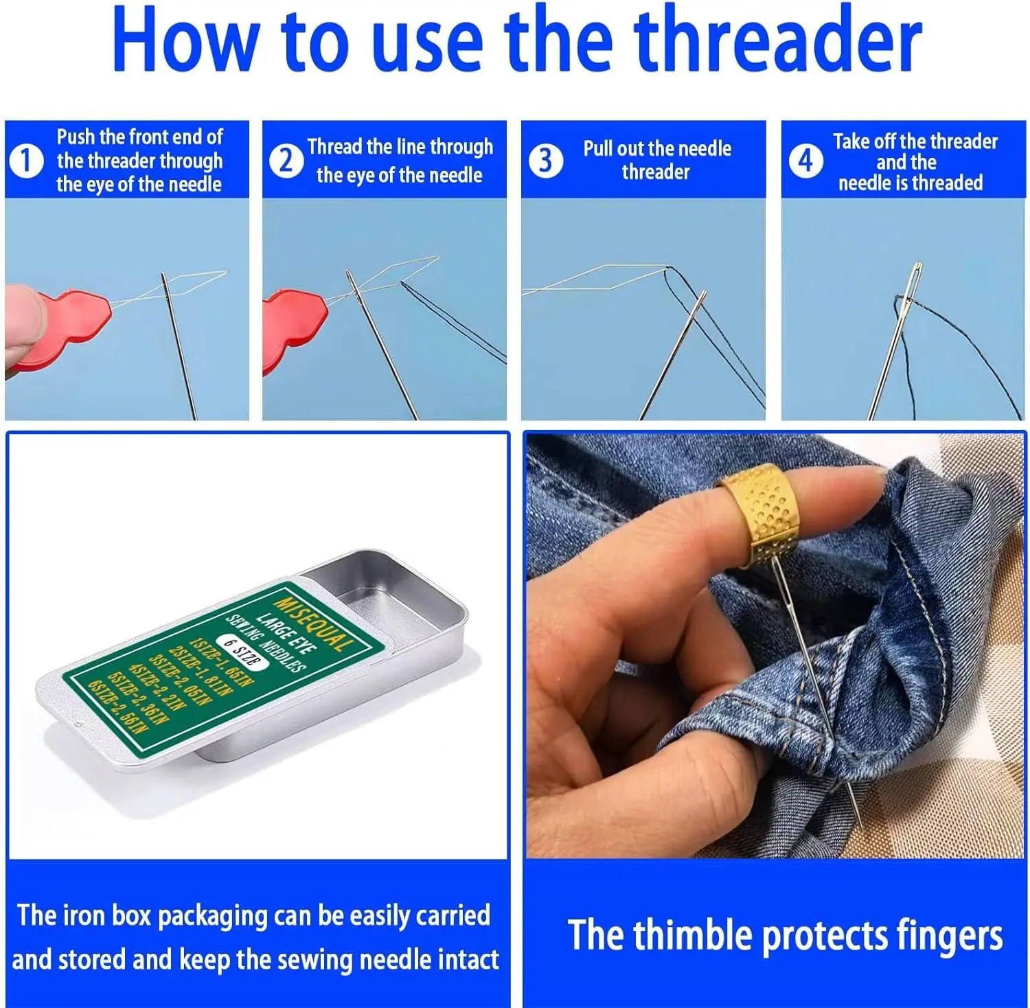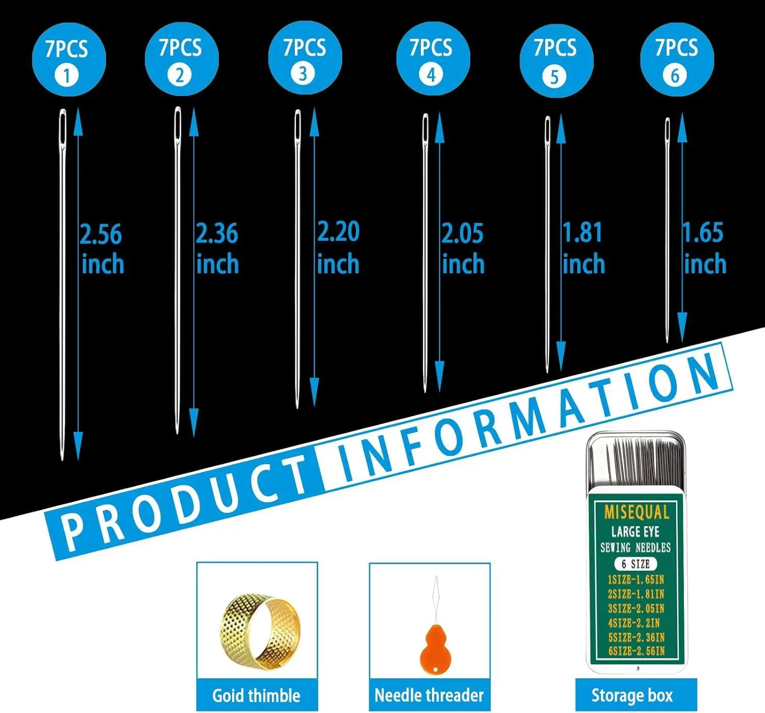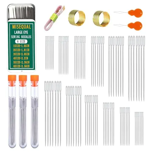 Misequal 42 Pcs Large Eye Sewing Needles, 6 Sizes Stainless Steel Sewing Sharp Needles with Threader for Embroidery Thread Needle and Hand Sewing Art Crafts (Silver, 42PCS)