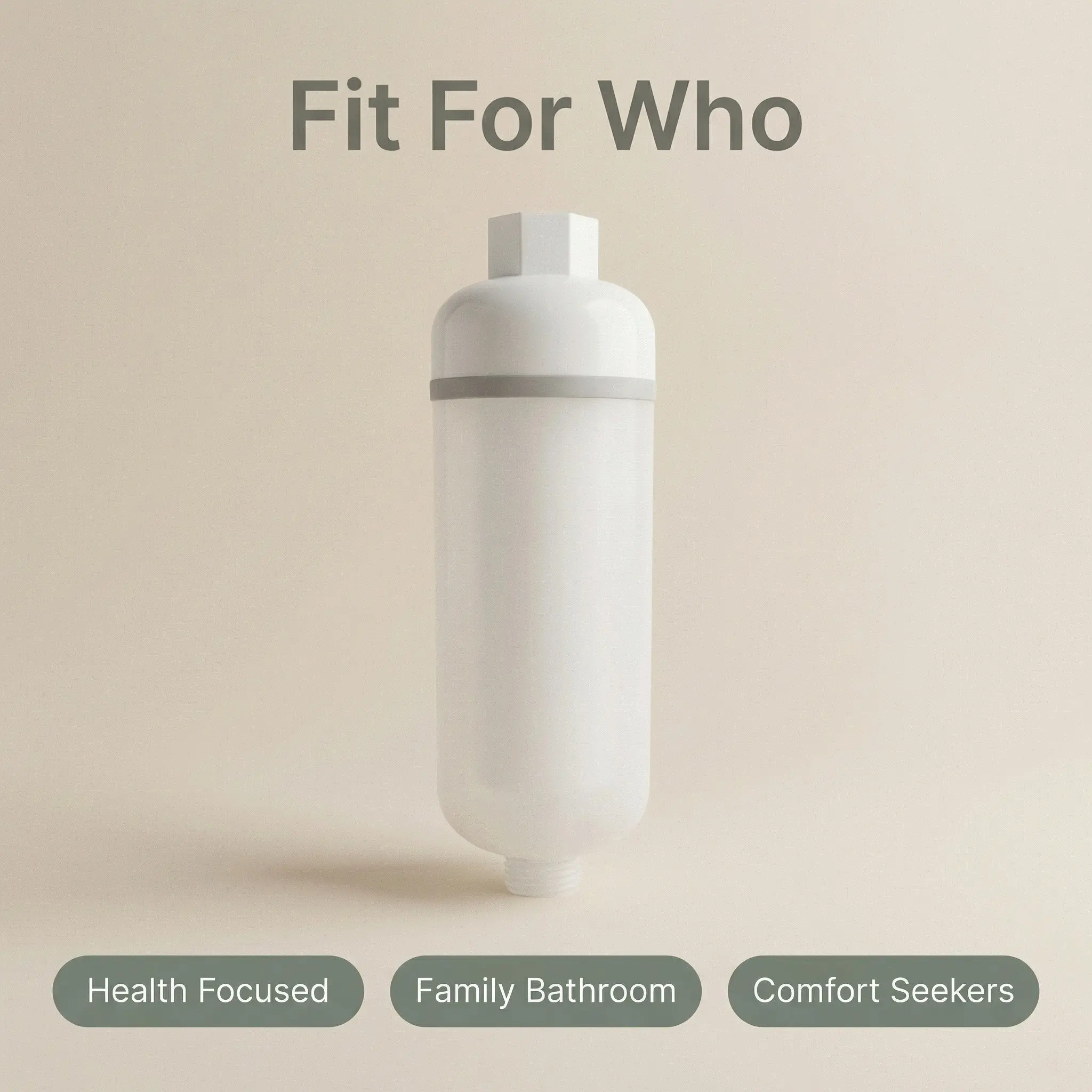 Shower Water Filter, Non-Replaceable Multi-Layer Filtration, Removes Chlorine & Sediment, Universal Fit, Tool-Free Installation, Minimalist Design