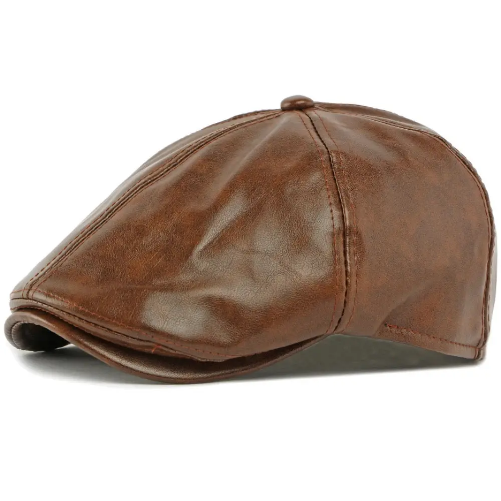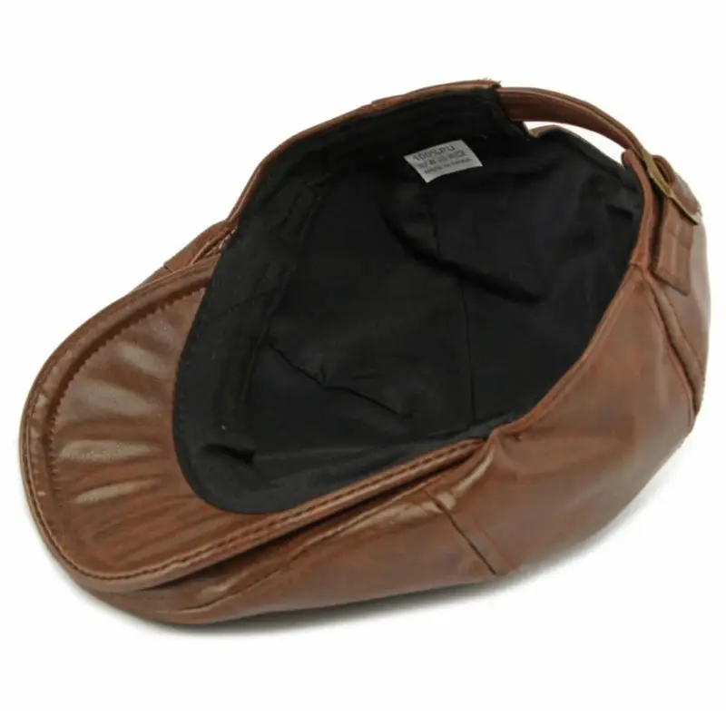 HT4937 Mens Beret Women Autumn Winter PU Leather Hat Retro Artist Painter Beret Hat Male Female Ivy Flat Cap Octagonal Beret Cap