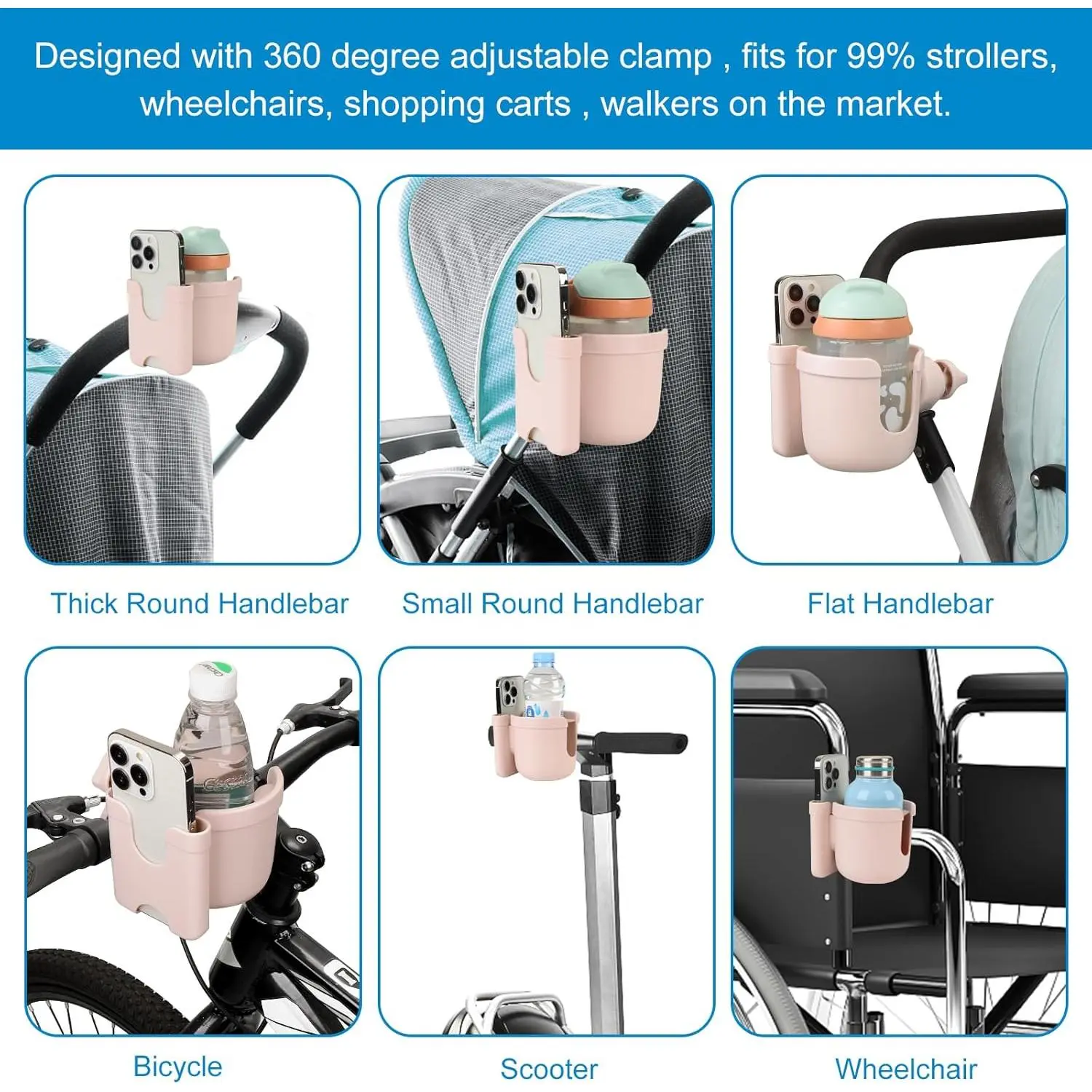 Cup Holder & Hook, All Light Pink
