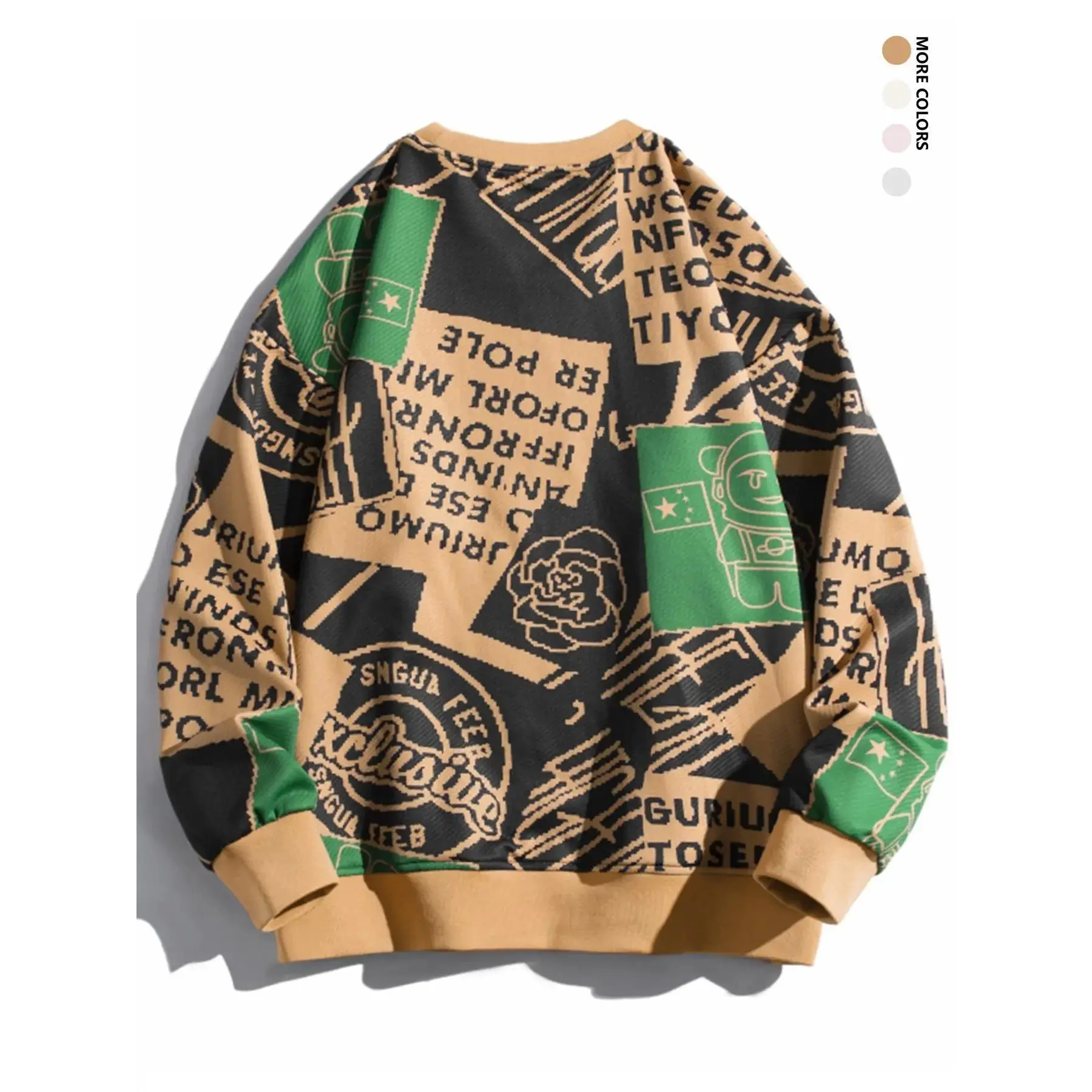 Men's Patchwork Letter Print Drop Shoulder Sweatshirt, Loose Casual Long Sleeve Round Neck Pullover for Fall & Winter, Men's Clothes for Daily Wear