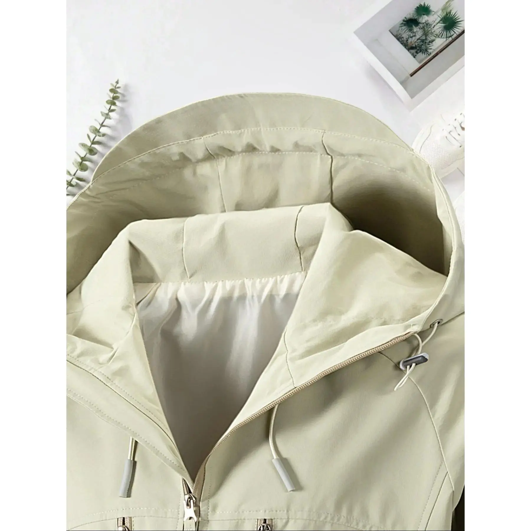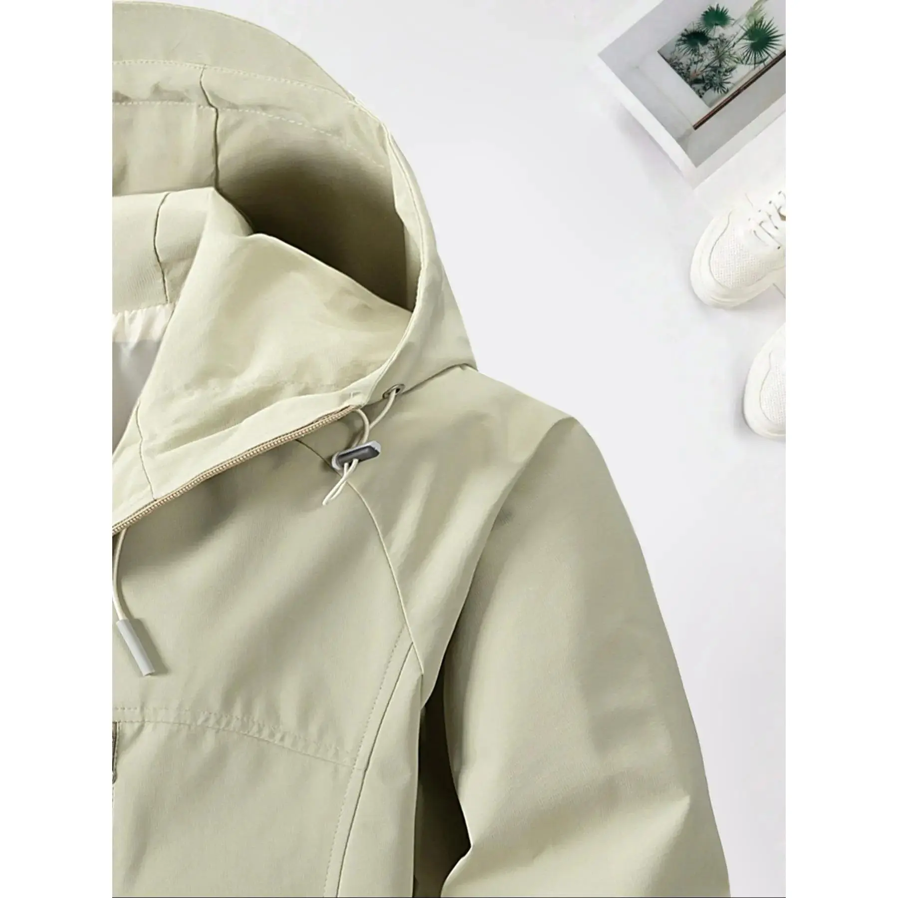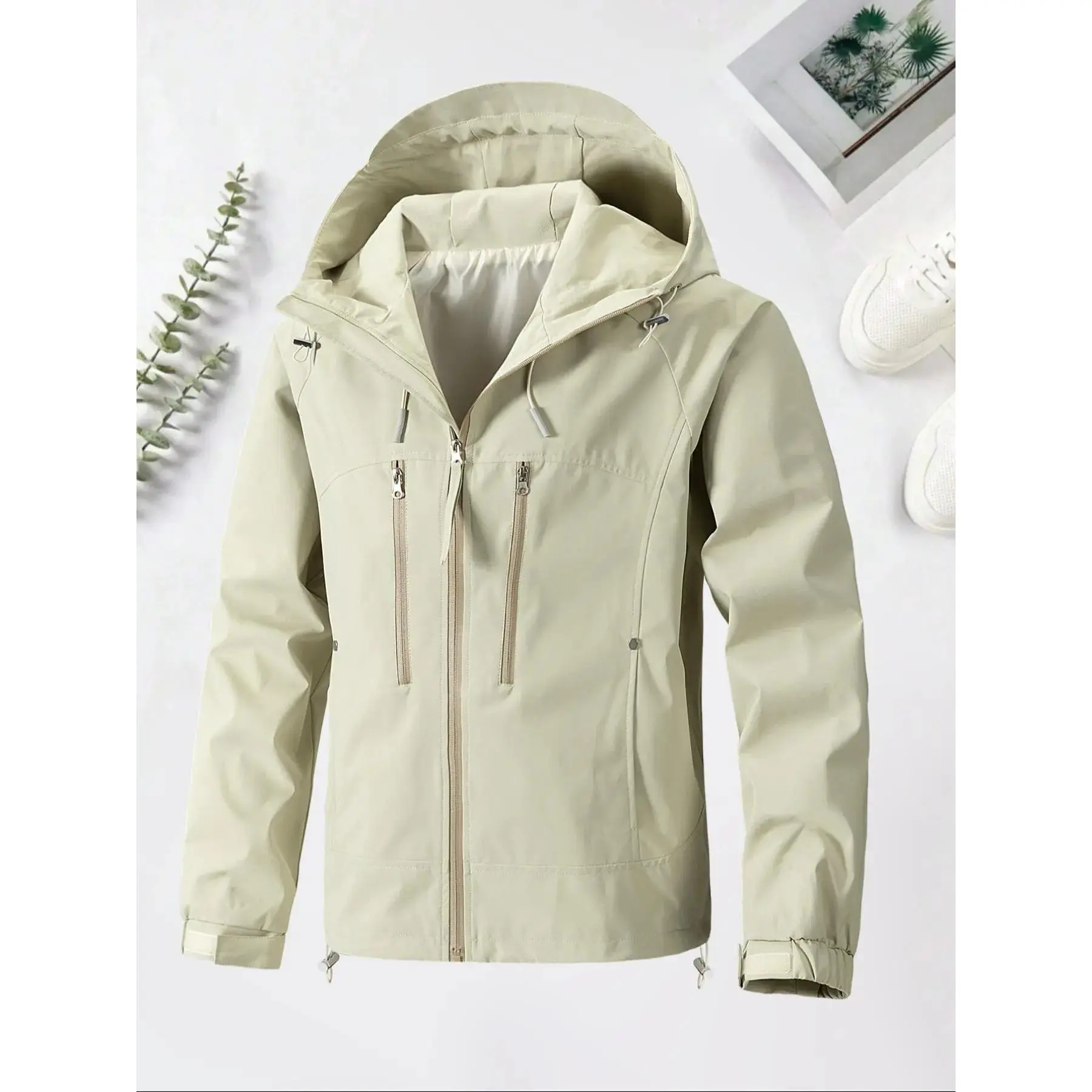 Men's Solid Pocket Drawstring Hooded Jacket, Regular Fit Casual Waterproof Windproof Long Sleeve Zip Up Outerwear for Spring & Fall, Fashion Men's Clothes for Daily Wear