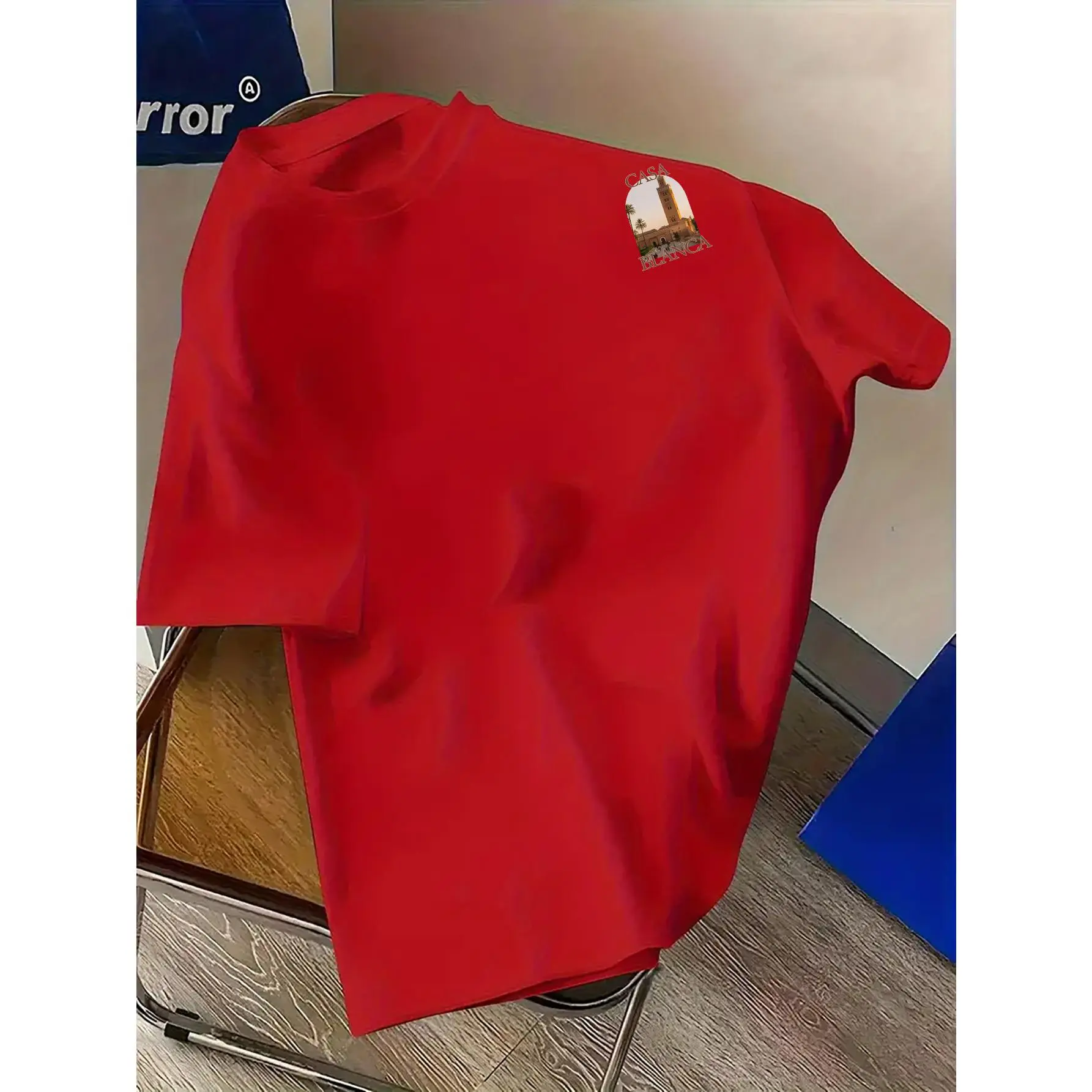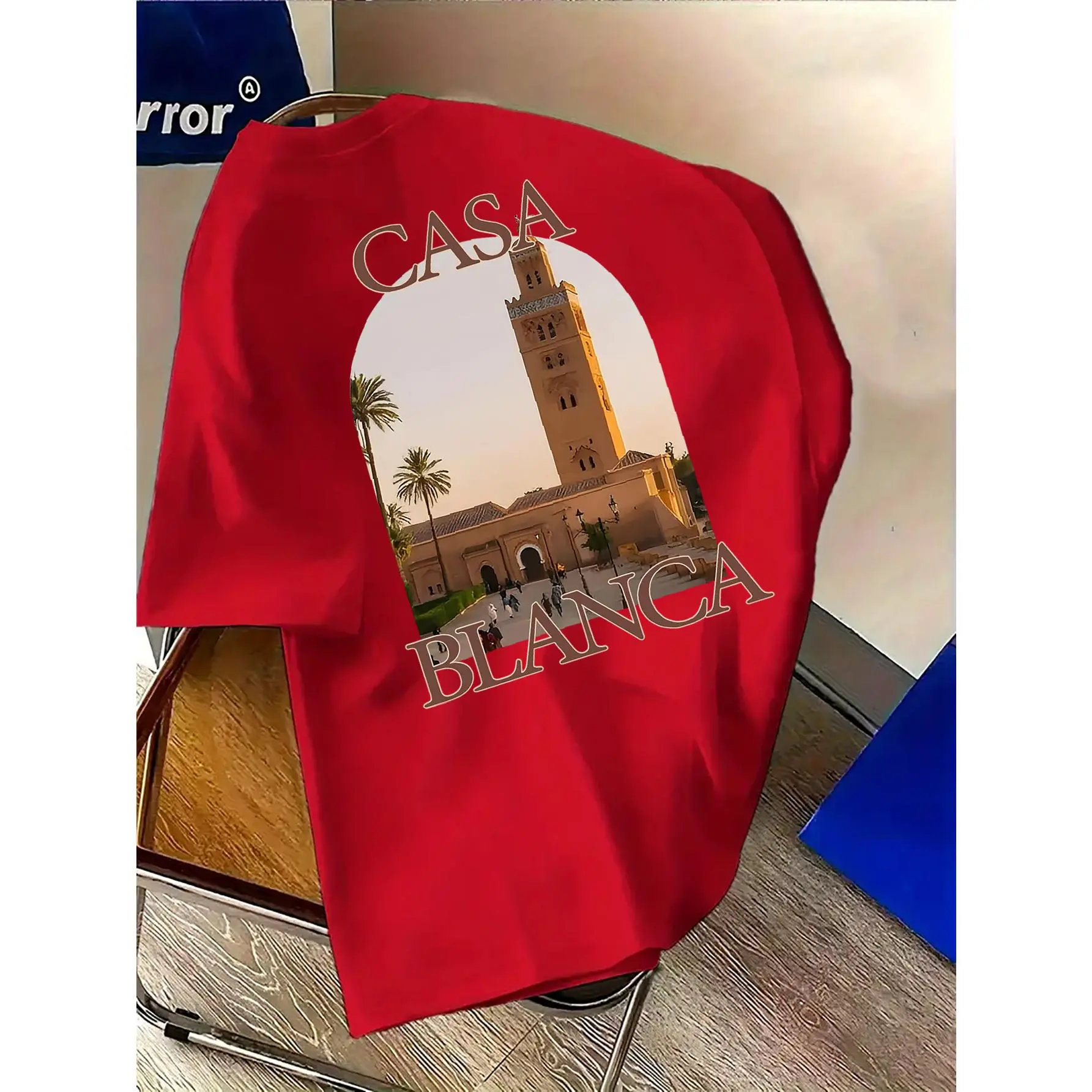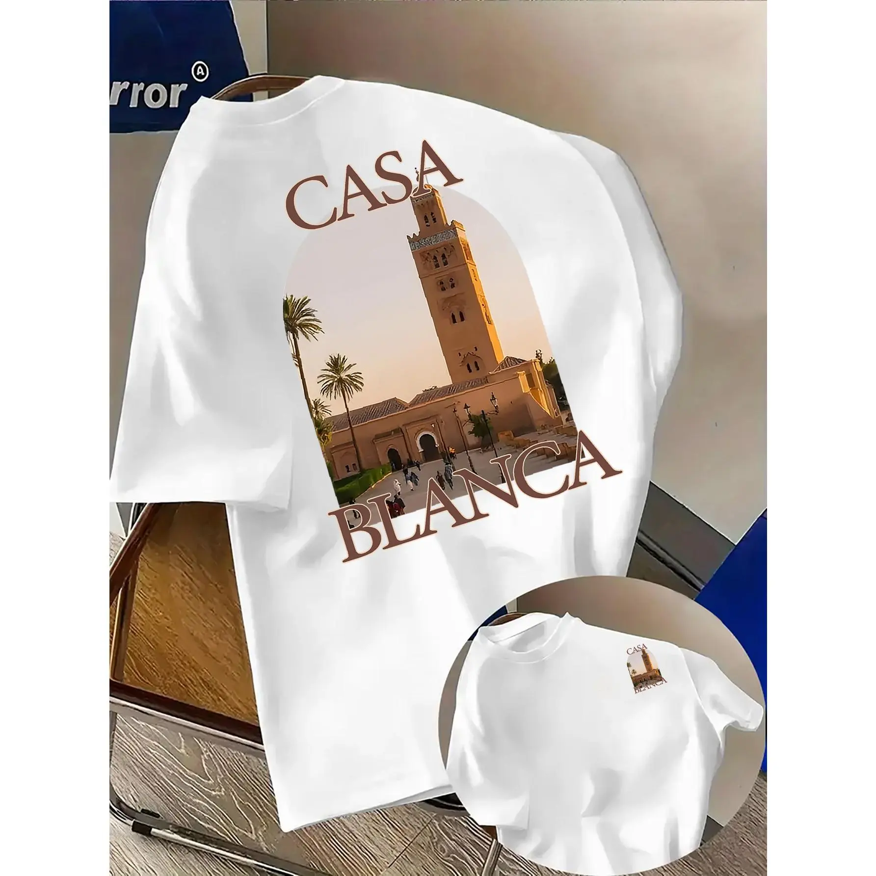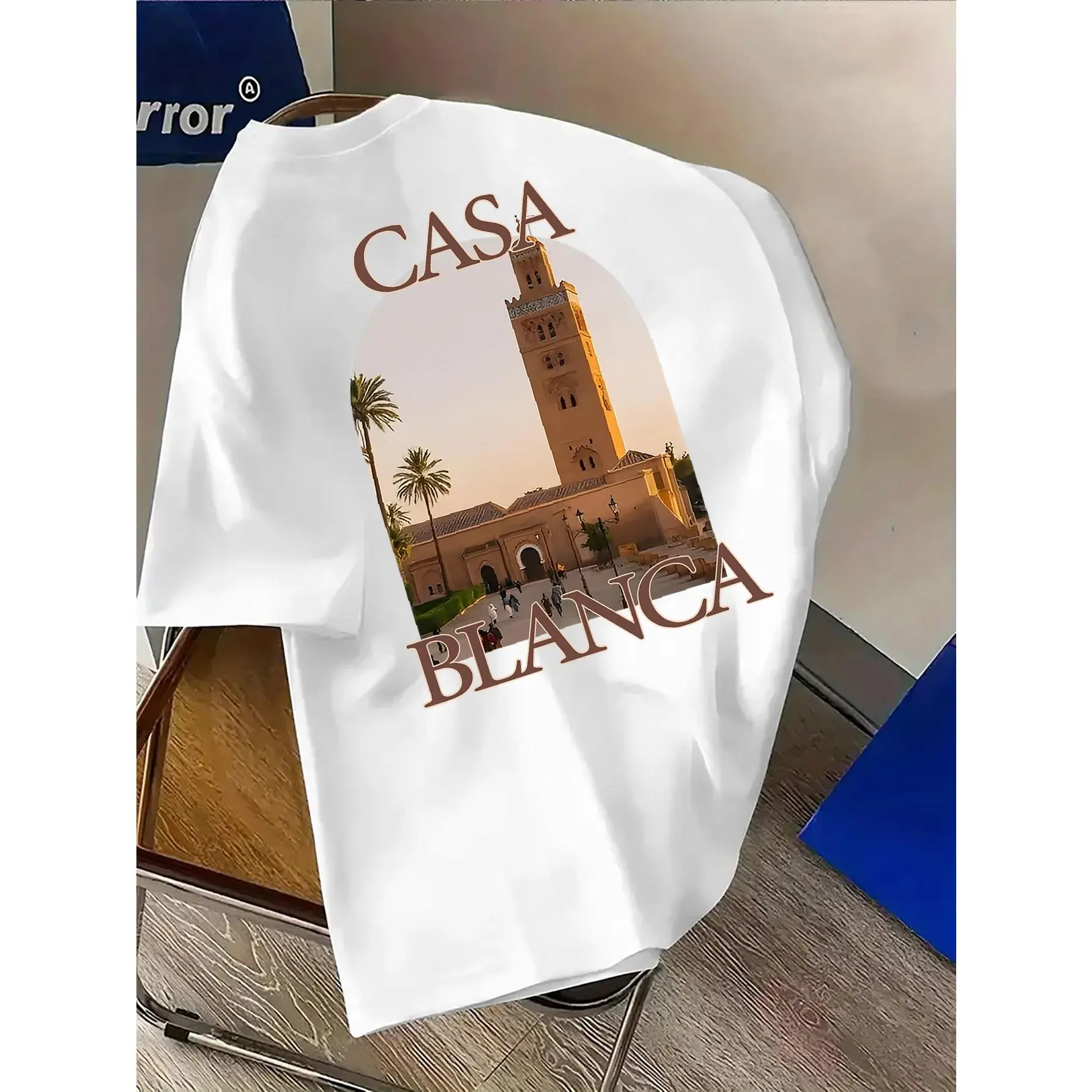 Men's Fashion Casablanca Print T-Shirt - Simple Casual Round Neck Short Sleeve Tee, Machine Washable Summer Clothing, Suitable for Summer and Year-Round Wear, Ideal for Daily Casual, Home, and Outdoor Use