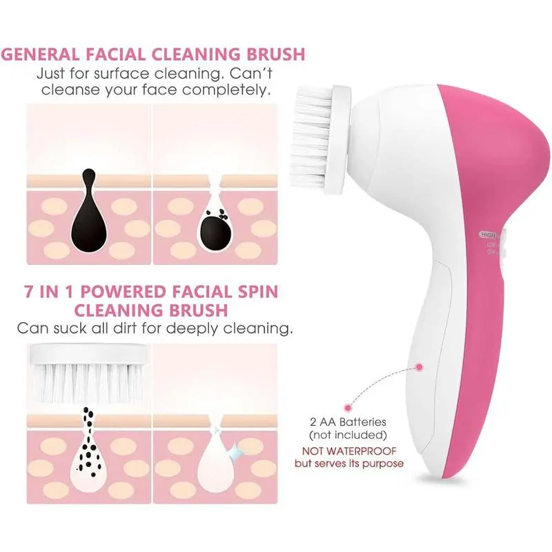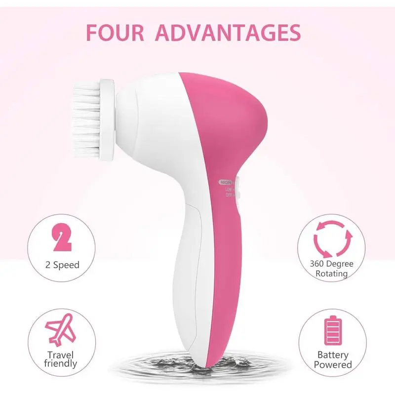 Facial Cleansing Brush, 5-in-1 Electric Silicone Face Scrubber, Sonic Rotating Exfoliating Massage Device, Gentle Deep Pore Cleansing & Anti-Aging, IPX7 Waterproof Spa Machine, 3 Speed USB Rechargeable Travel Skin Care Tool, Soft Silicone Bristles
