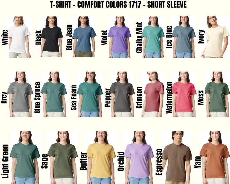 The Comfort Colors C1717 Tee is a premium, garment-dyed t-shirt loved for its soft, lived-in feel and vintage look. Built from heavyweight cotton, it combines durability with comfort, making it a favorite for streetwear, casual layering, and graphic prints. Each tee is uniquely dyed for a one-of-a-kind washed aesthetic.