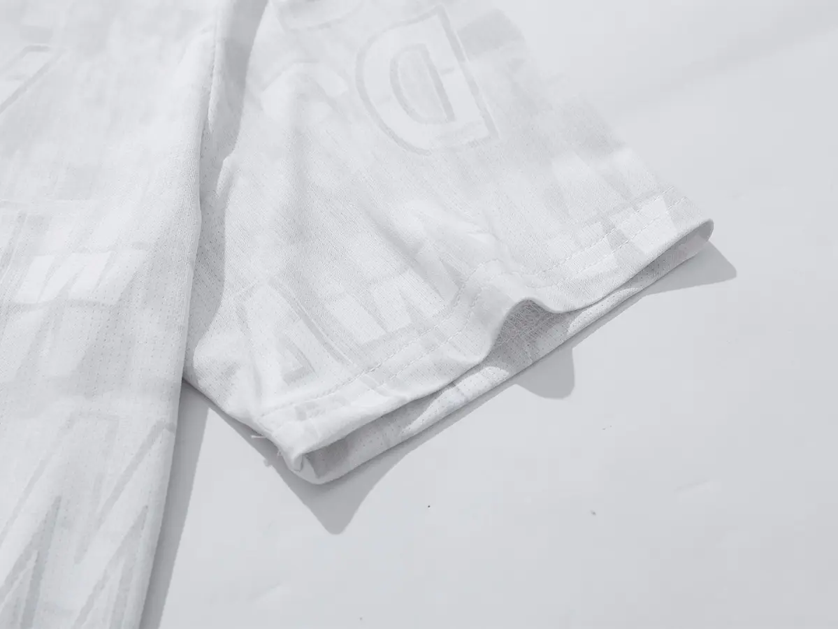 Hidden Texture Letter Jacquard Design: Utilizes a 3D embossed hidden texture lettering process; the white version features a white base with hidden texture, while other colors offer subtle textures within the same color family for a visually transparent, premium look. This adds modern texture and layered details to the classic short-sleeve T-shirt.