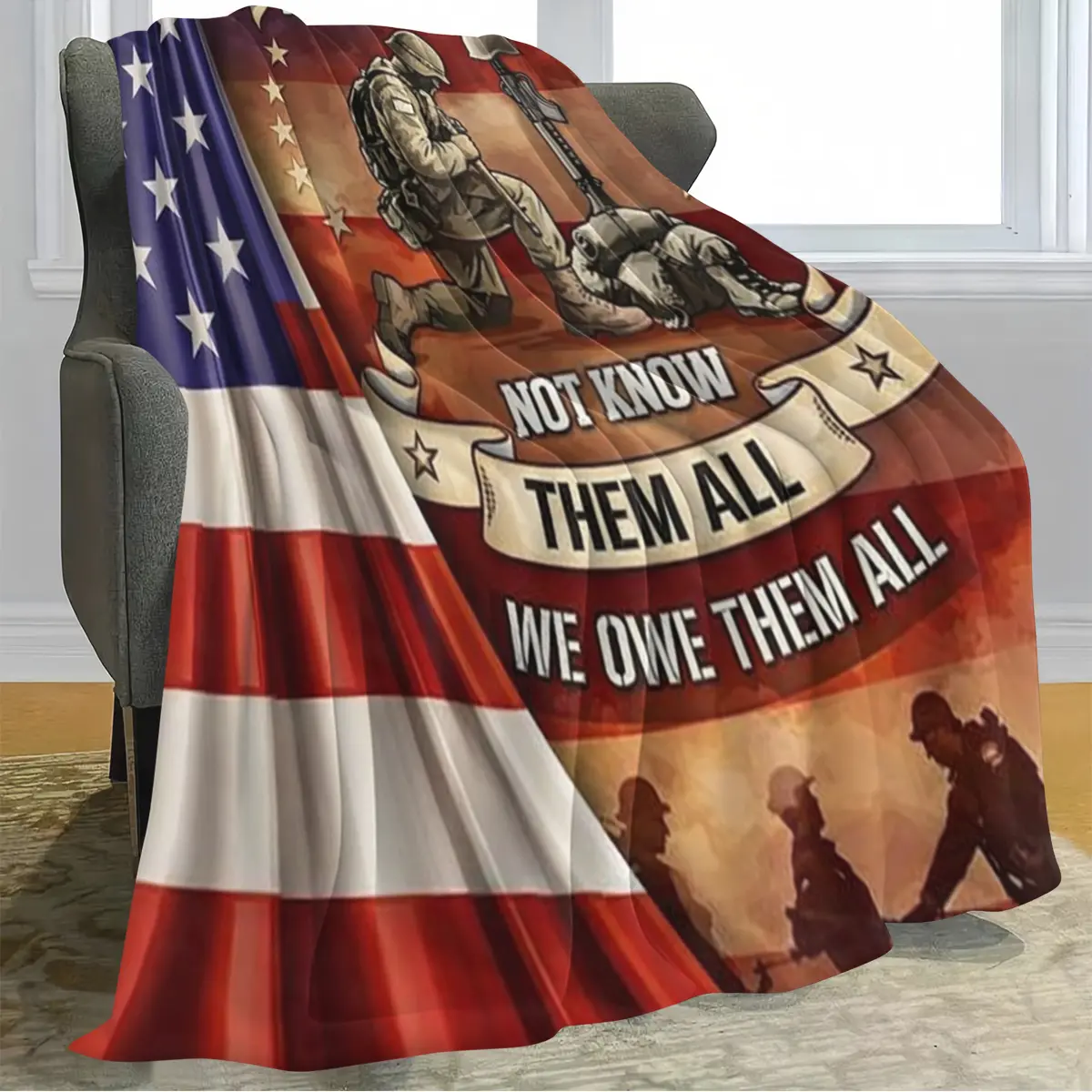 Military commemorative blanket—sofa throw/bedspread—demonstrates patriotism and respect for military personnel. Ideal as a holiday gift for veterans and military families or for military-themed events.
