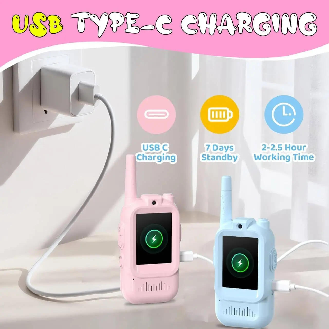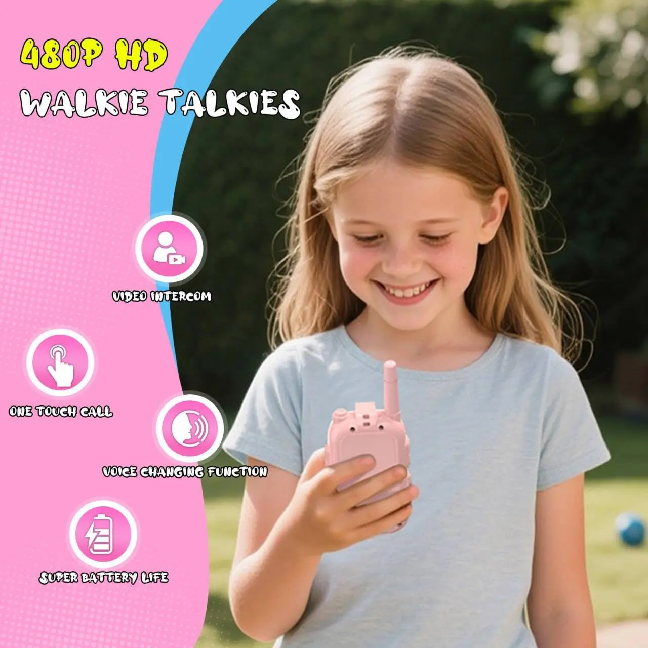 ·Easy to carry, the walkie talkie adopts ergonomic design, which can be comfortably placed in the hands of children. The simple one click button makes this toy easy for girls aged 3-12 to use.
