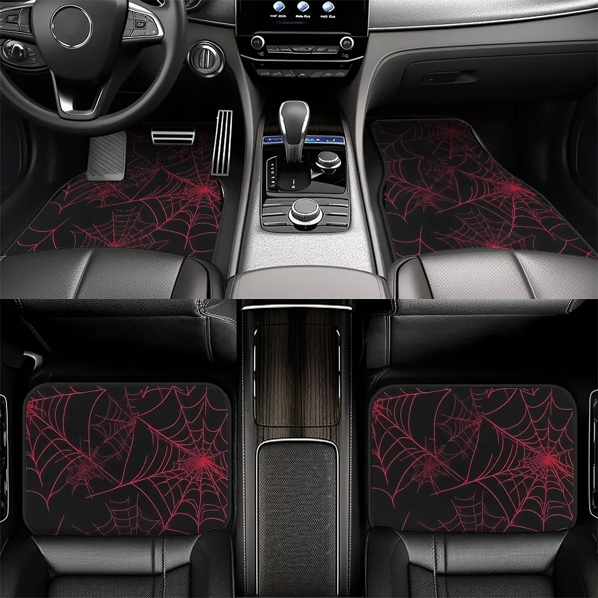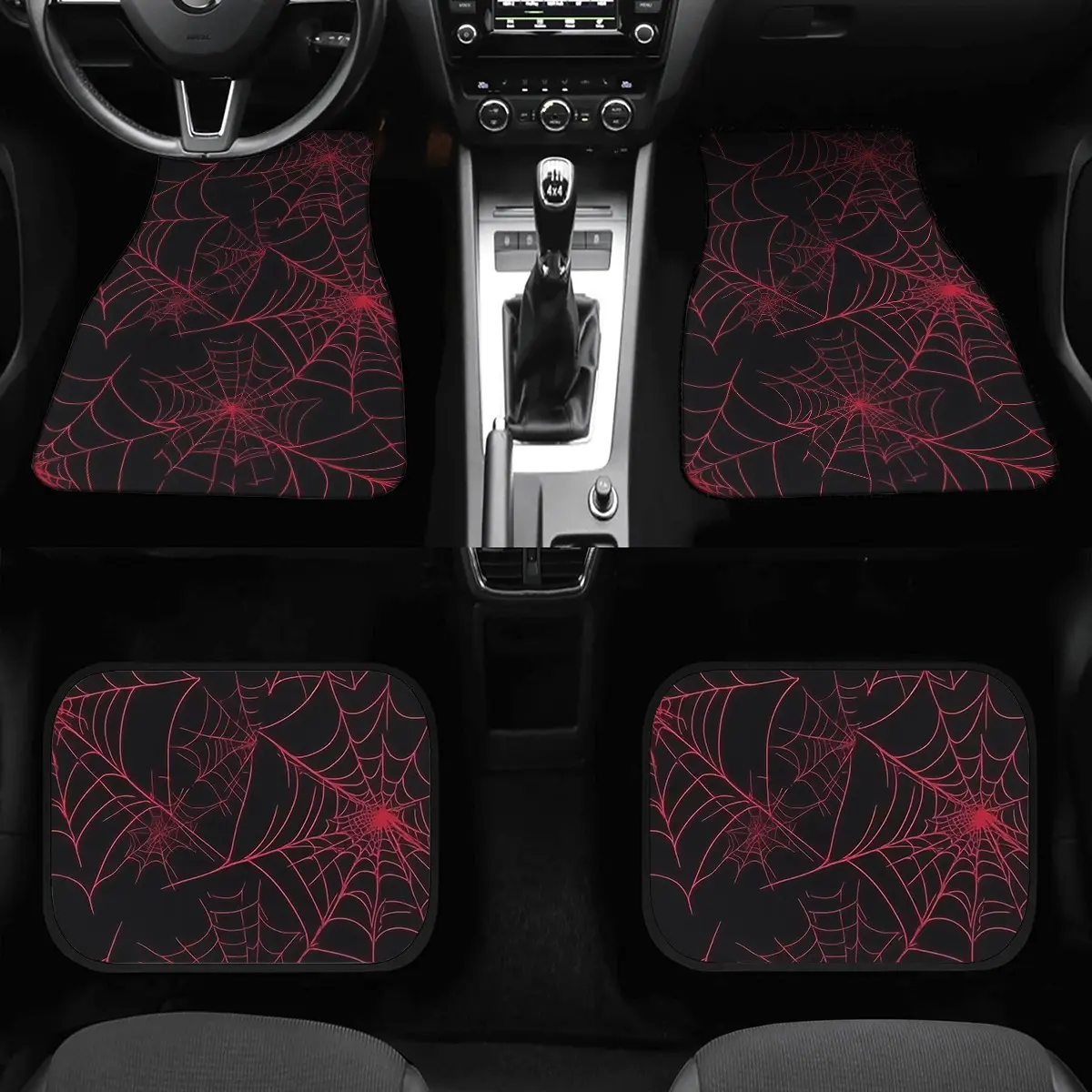 5. 4-Piece Car Mat Set, Spider Web Print, Universal Fit for All Vehicles, Front & Rear Mats, Easy Clean, Protective Interior Decor