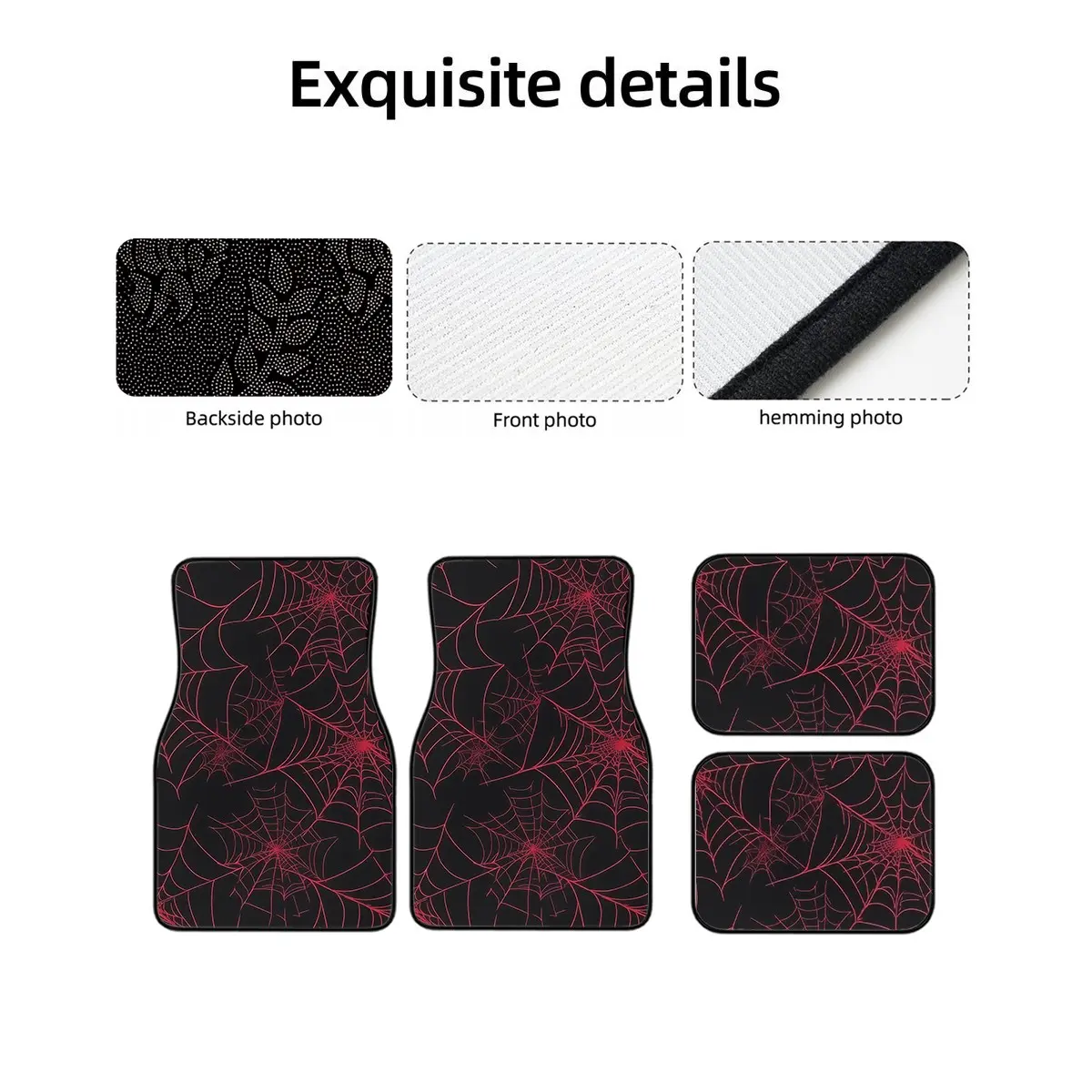 【Spider Web Pattern】: Features a unique red spider web print, adding a distinctive touch to your car's interior.