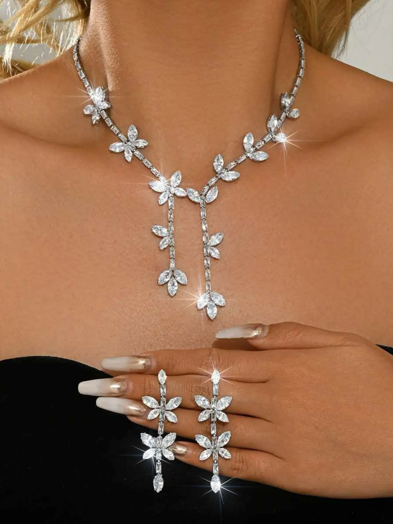 【Bling necklace】: Features a stunning bling necklace perfect for adding glamour to any outfit.