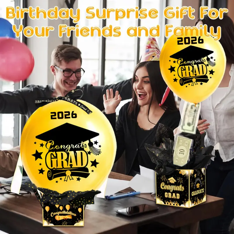 2026 Graduation Surprise Balloon Gift Box, Black And Gold Graduation Balloon Money-Extracting Gift Box, Used For Graduation Party Decorations, Party Games, Raffle Giveaways, And Personal Gift Boxes