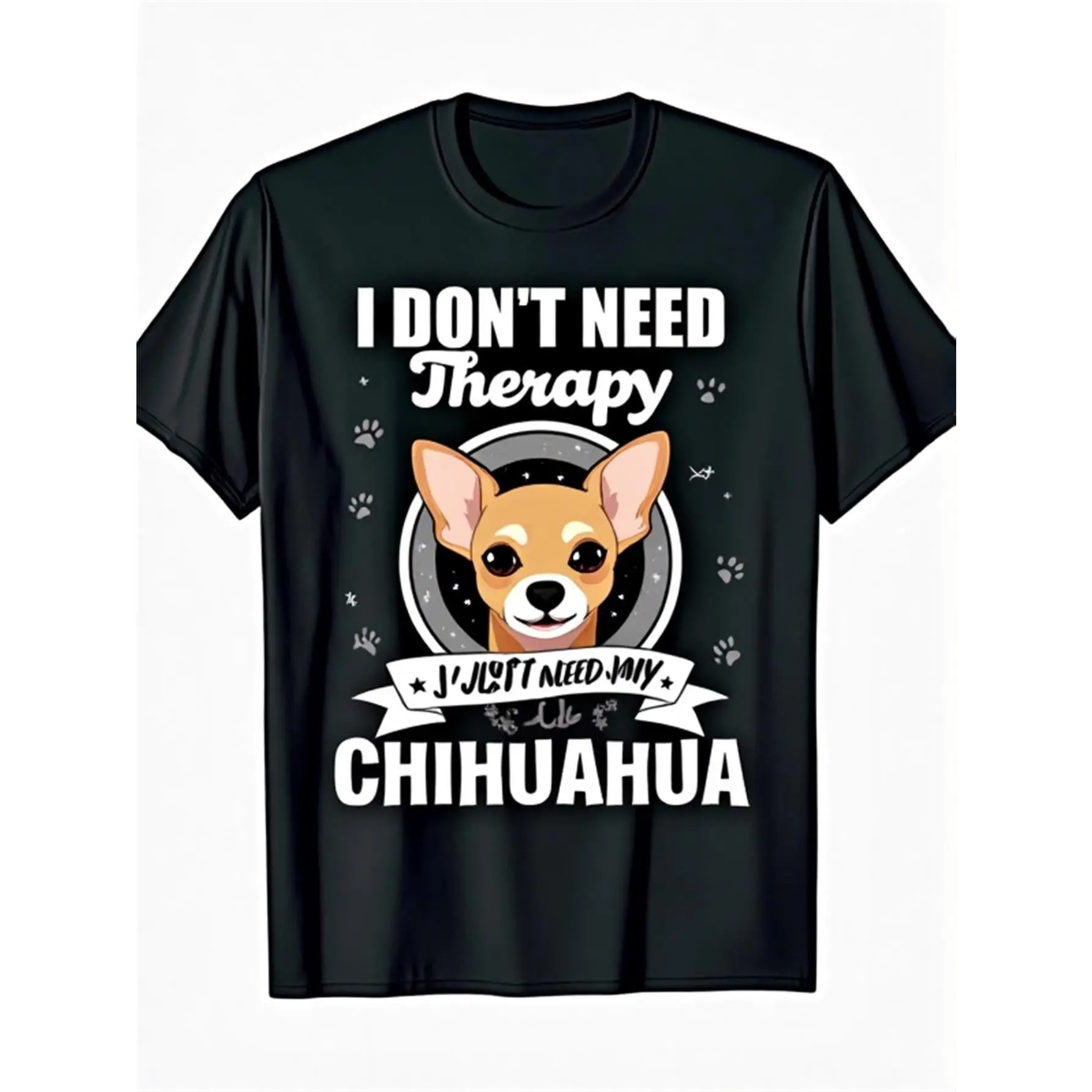 Funny Chihuahua T-Shirt "I Don't Need a Chihuahua" Slogan - 100% Cotton 220gsm Heavyweight Casual Short Sleeve Round Neck Tee with Chihuahua Dog Face & Paw Print Design - Gift for Chihuahua Lovers