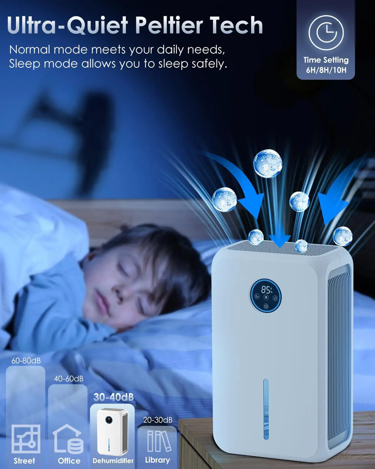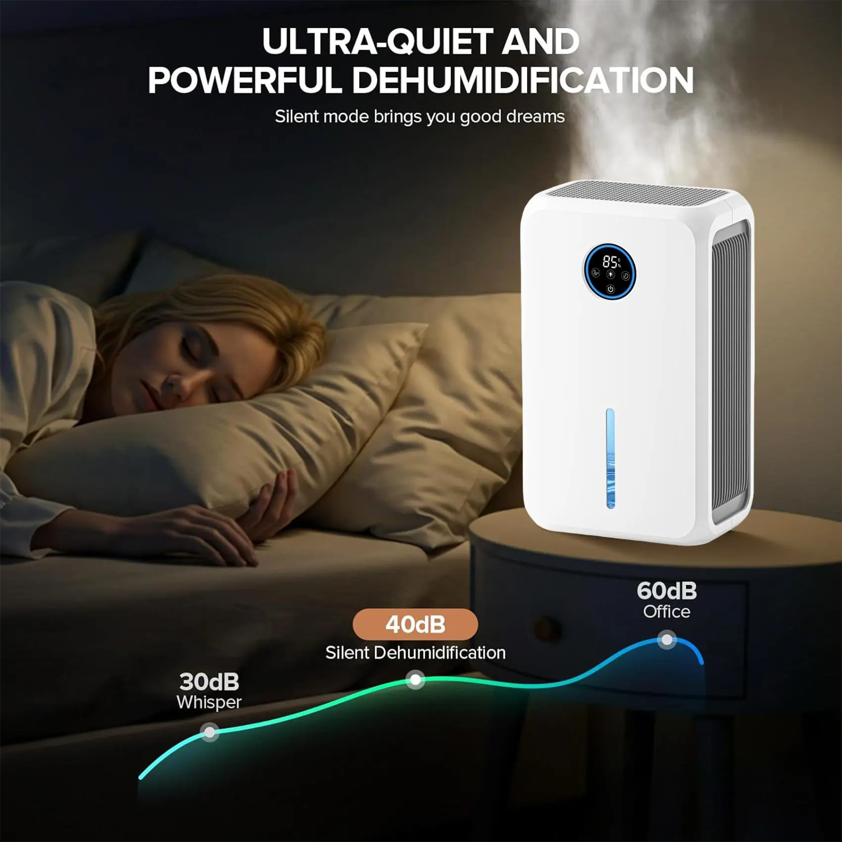 Designed with low-noise technology, this quiet dehumidifier runs smoothly in the background, making it perfect for bedrooms, nurseries, and nighttime use