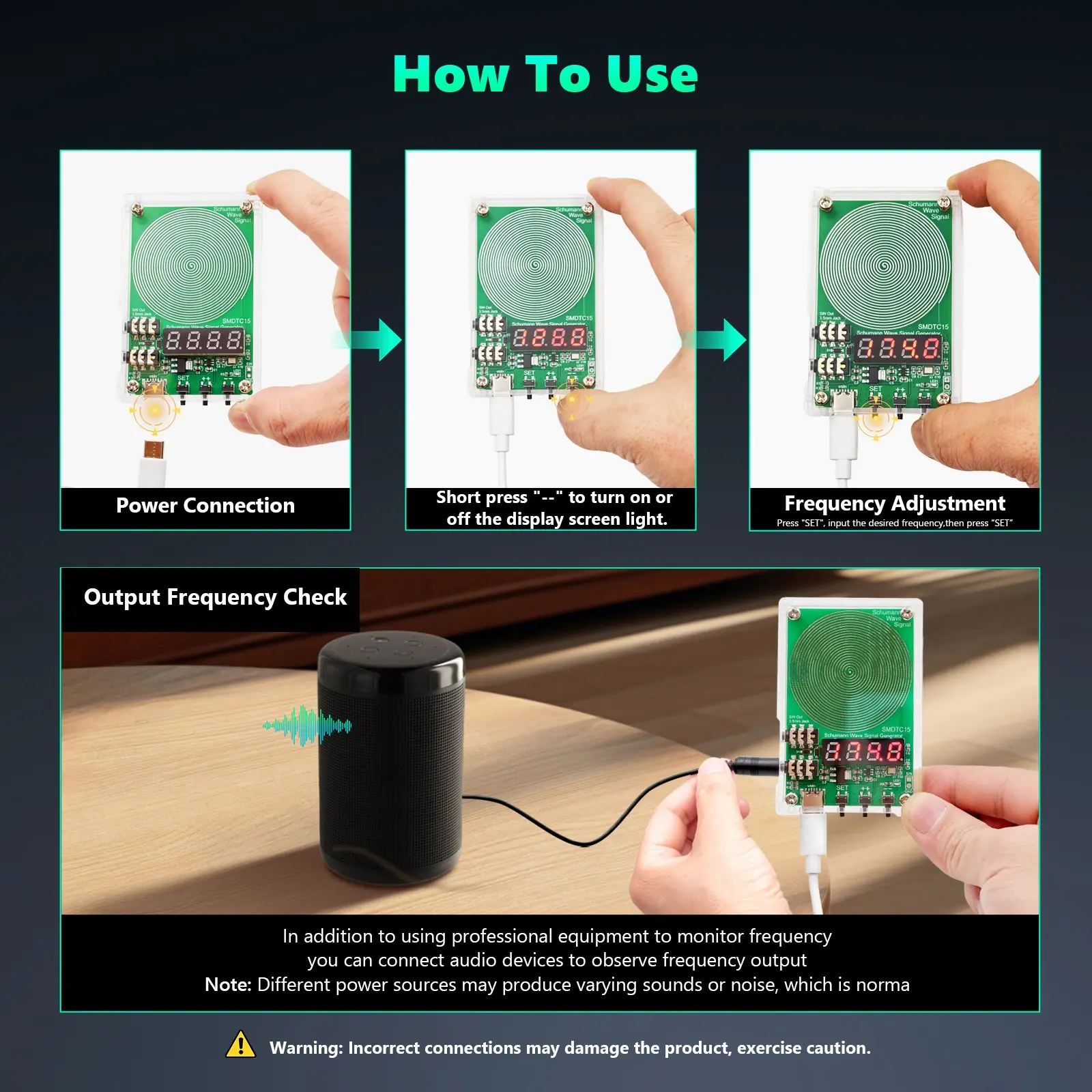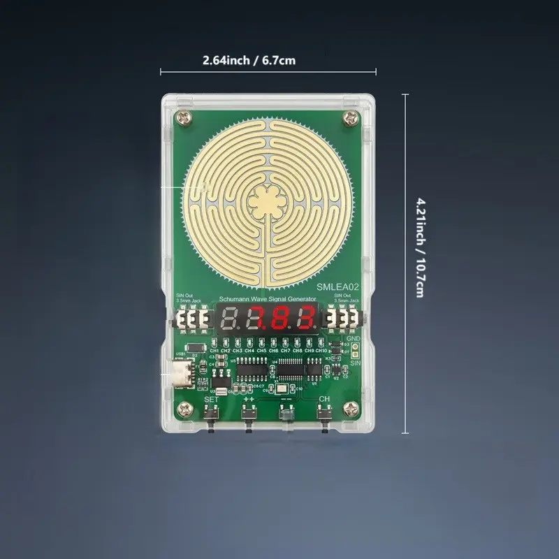 Q1: How to adjust the frequency? After connecting the TYPE-C power supply, the digital tube displays 7.83Hz, and the circuit board will automatically emit a 7.83Hz Schumann wave. The digital tube displays the frequency.