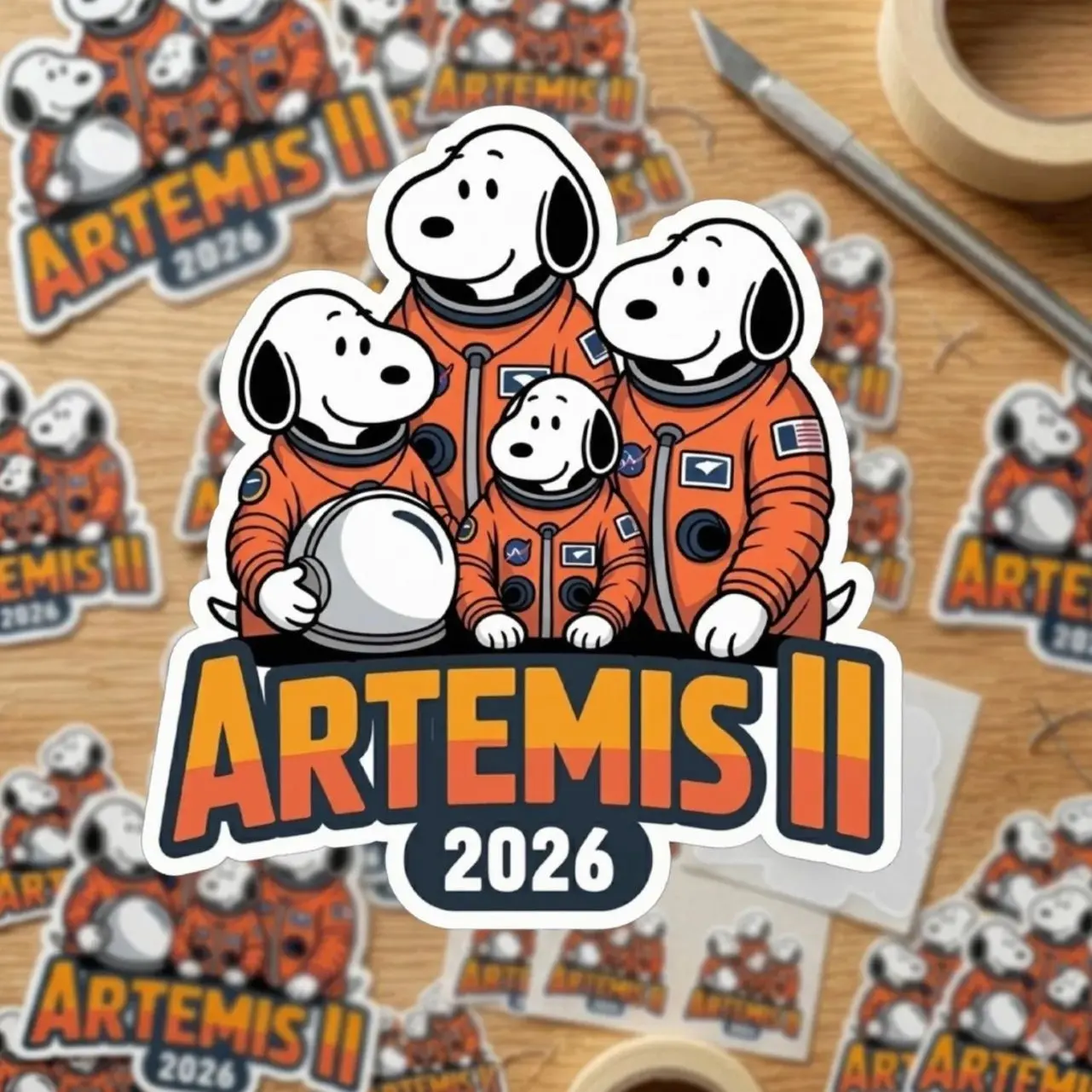 Artemis II Puppy Patch Sticker, Retro Sticker, Space Logo Decal, Waterproof Vinyl, Laptop Water Bottle Car Sticker