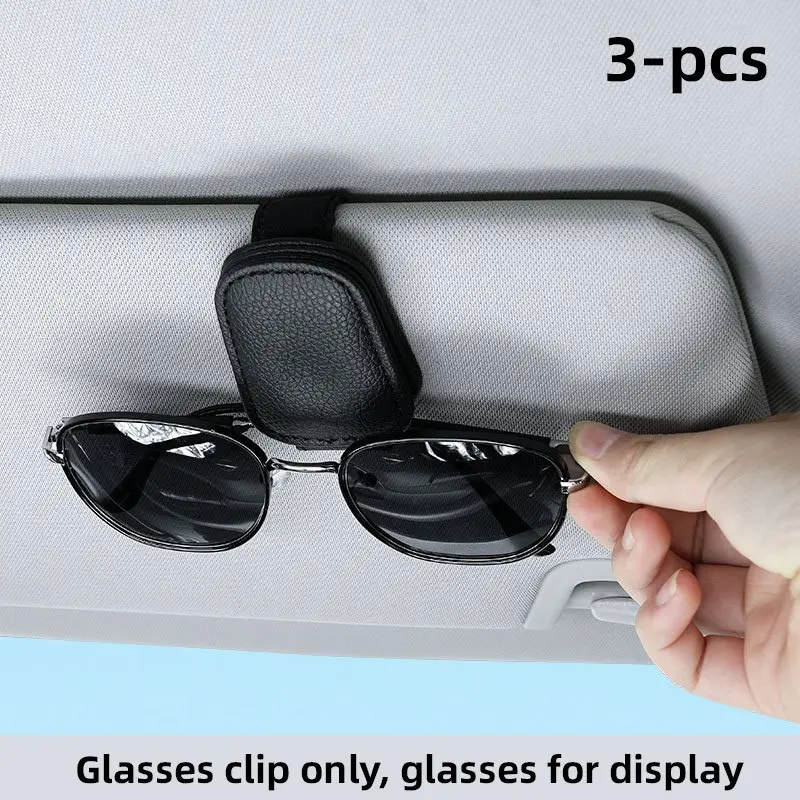 3pcs Car Sunshade Sunglass Holder Clips, Leather Multifunctional Car Sunglasses Rack, Essential Automotive Accessory for Drivers