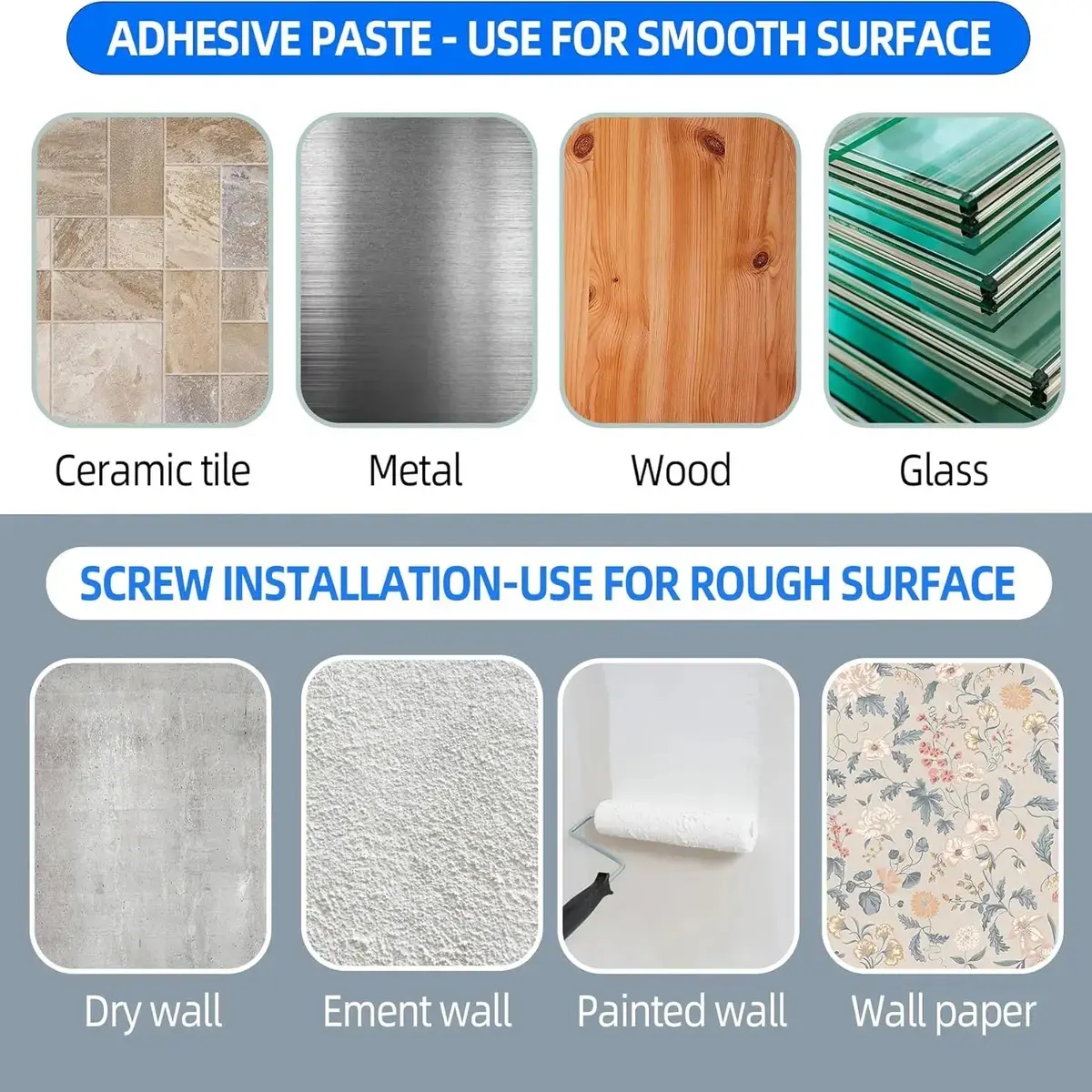 ·【Tool-free Easy to Use】- No tools required. Sticky the curtain hanger is a breeze on most wall types. Easily use without nails, hole drilling. On uneven surfaces, use screws
