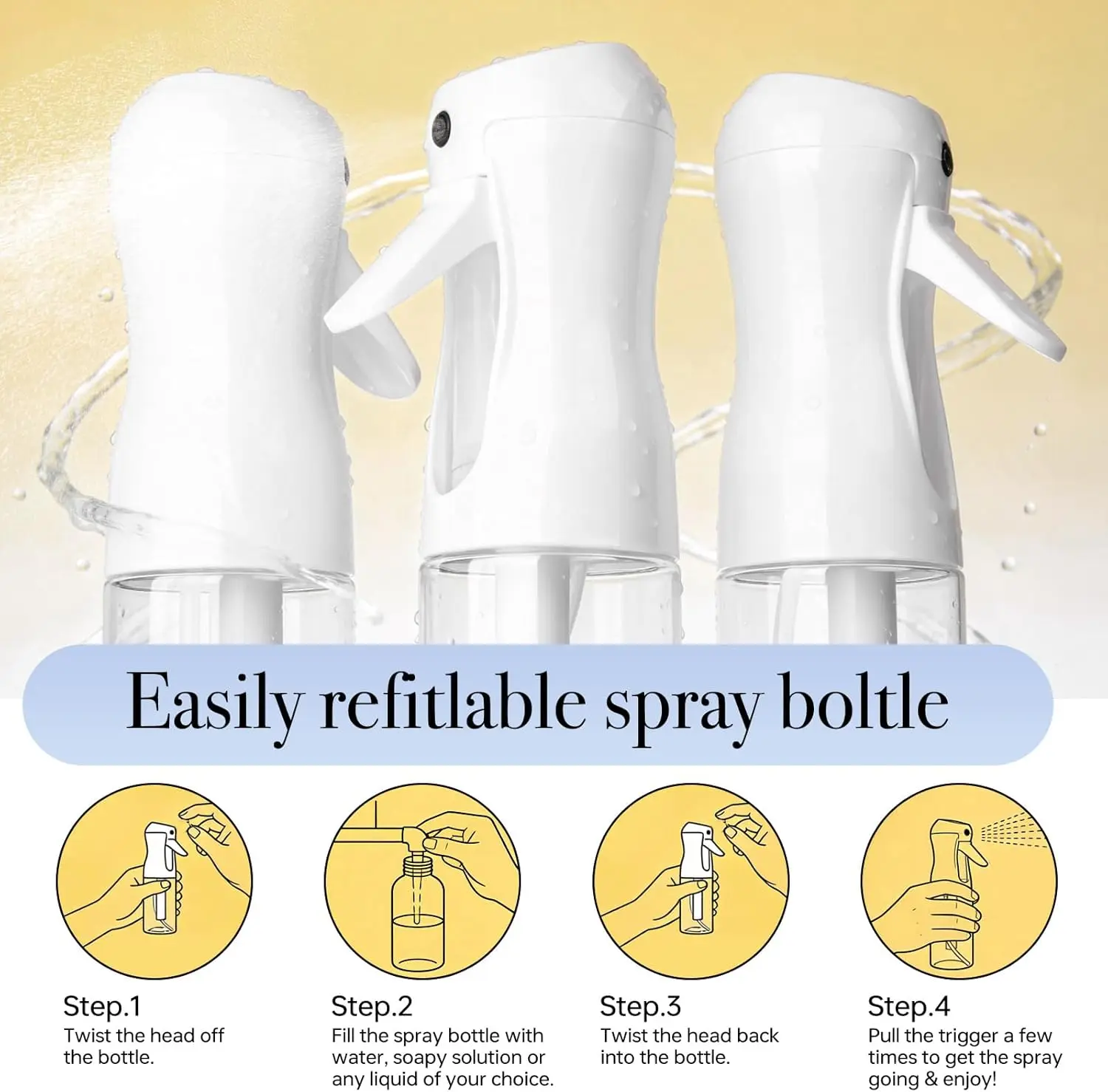 ·Ultra Fine Water Mister: This refillable spray bottle is perfect for hair styling, salon use, skin care, cleaning, and plants. Each bottle holds 200ml (6.8oz) of liquid. Ideal for various applications, it offers versatility in your daily routines.