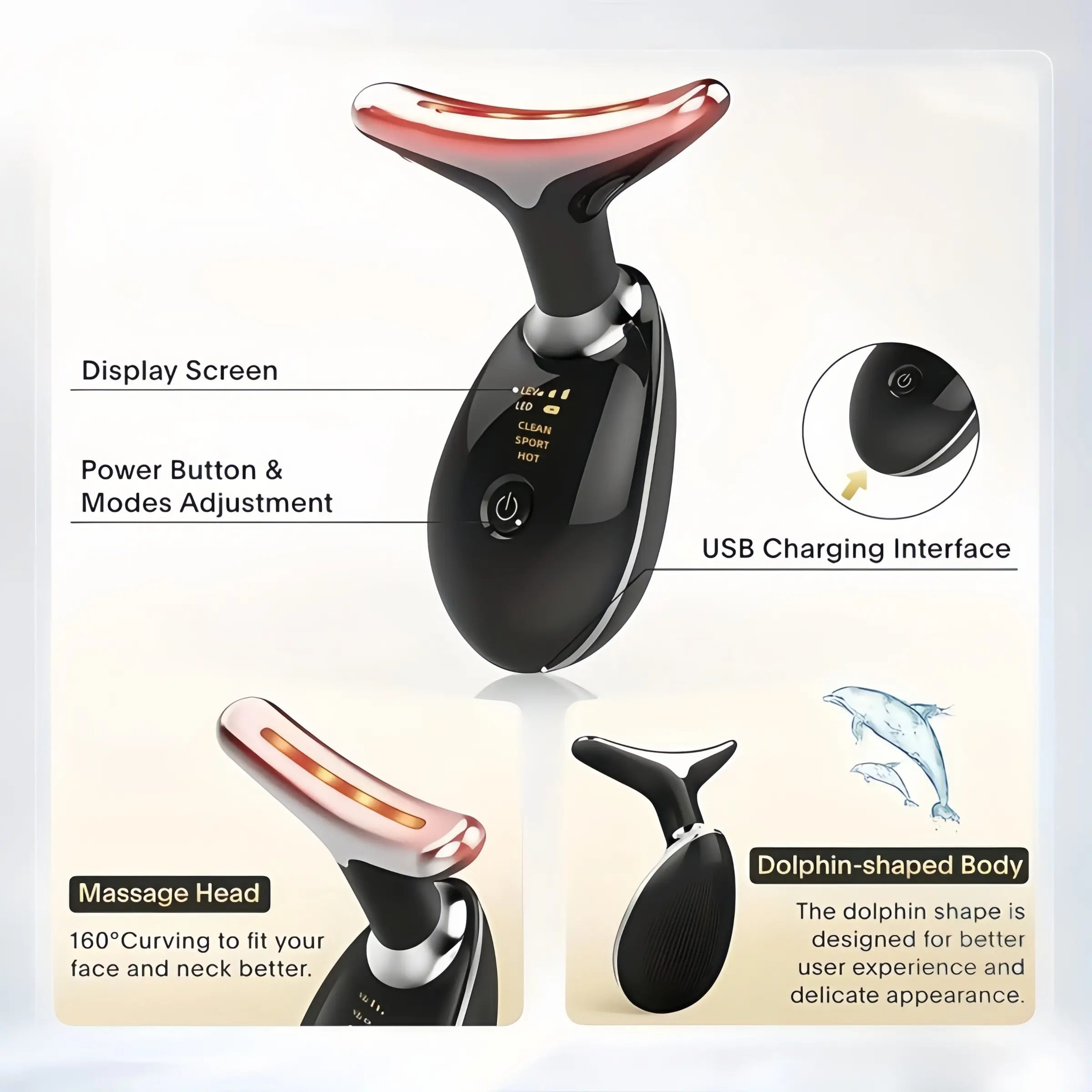 Rechargeable facial and neck massager - beauty personal care product - neck anti-wrinkle beauty equipment - facial phototherapy skin tightening machine - lifting and tightening massager - rejuvenating and reducing wrinkles and cleaning heating multi-funct